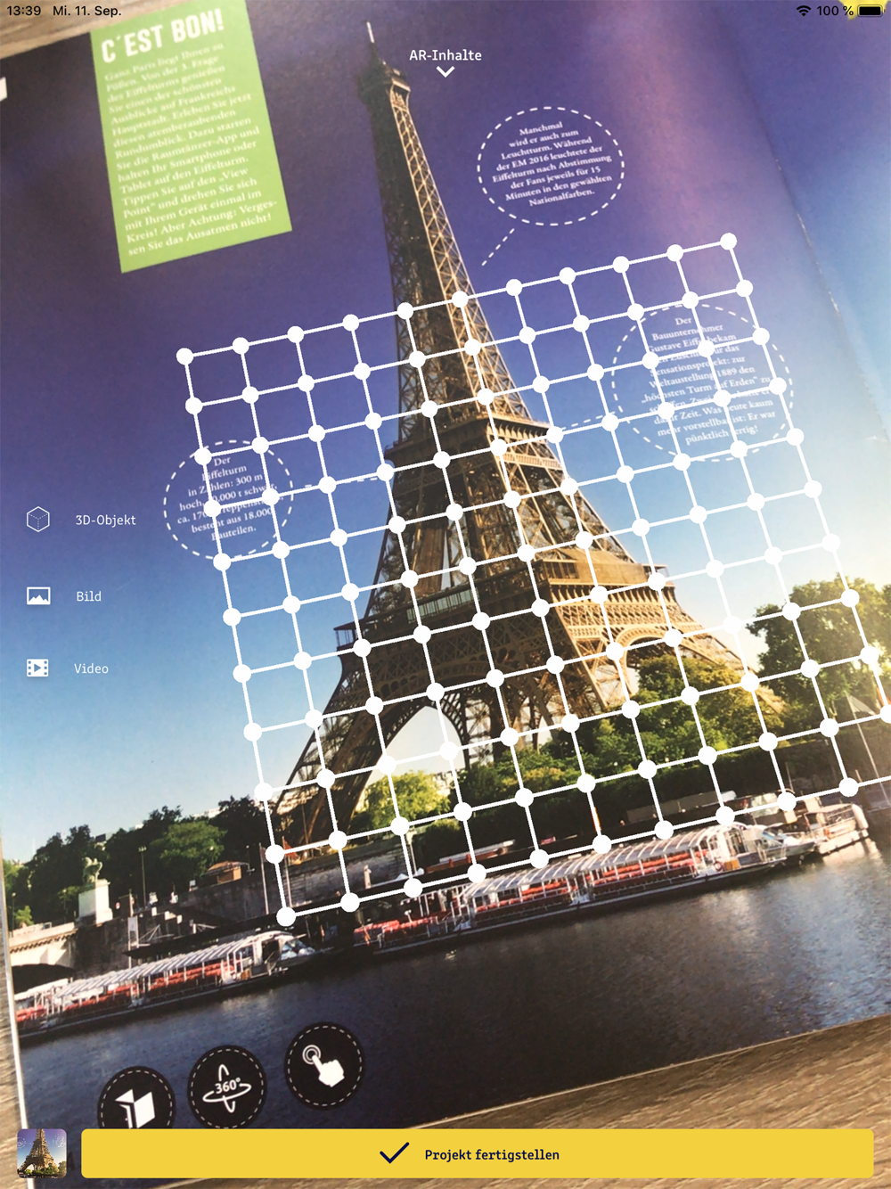 Wählen Sie direkt in der App ein passendes Foto und legen Sie Bilder, Videos und 3D-Modelle darauf. Veröffentlichen Sie Ihre Projekte in der App KOALAR View, sodass jeder die digitalen Inhalte entdecken kann.