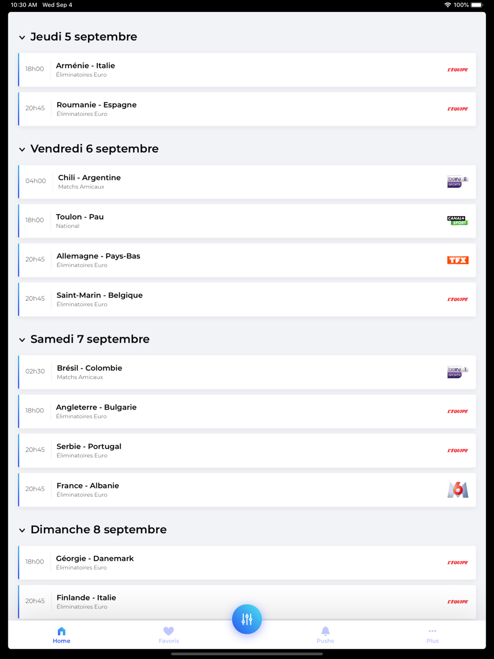 - Des notifications configurables pour ne pas rater le début des matchs de vos équipes, vos compétitions et chaînes préférées