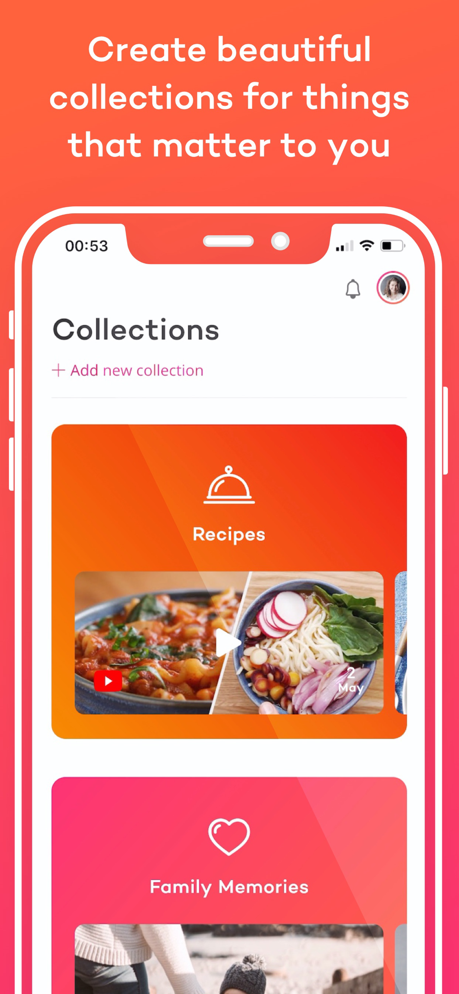 - Create Collections of your dearest memories