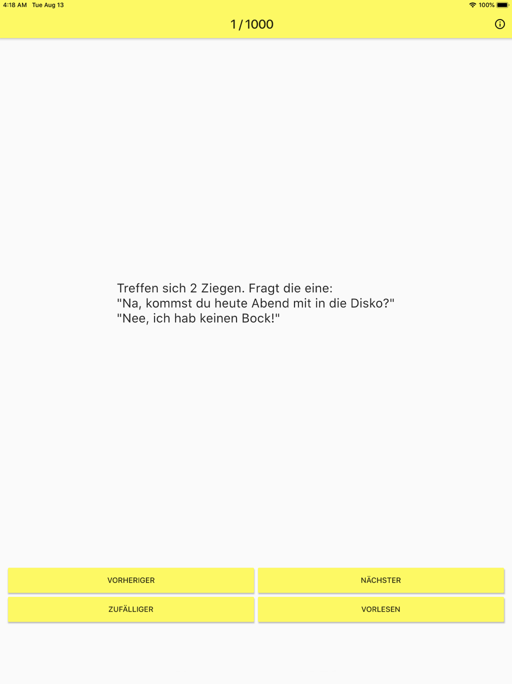 Ganze 1000 Flachwitze sind in der App 1000 Flachwitze enthalten!