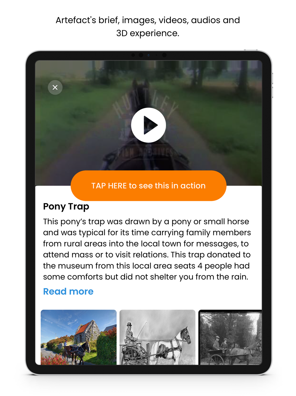 A camera is integrated in the app to let you scan the artefacts and the app will tell you what it is along with detailed description, images, videos and audios. Some of the artefacts have 3D models which will show you the artefacts in action.