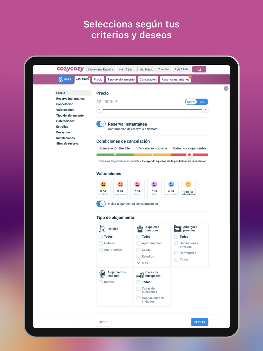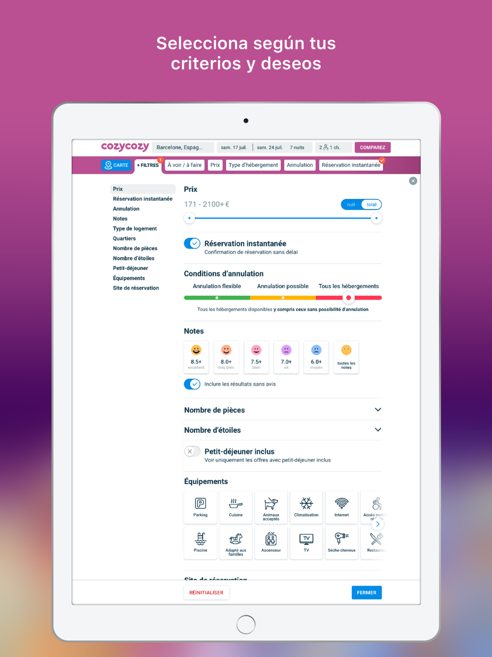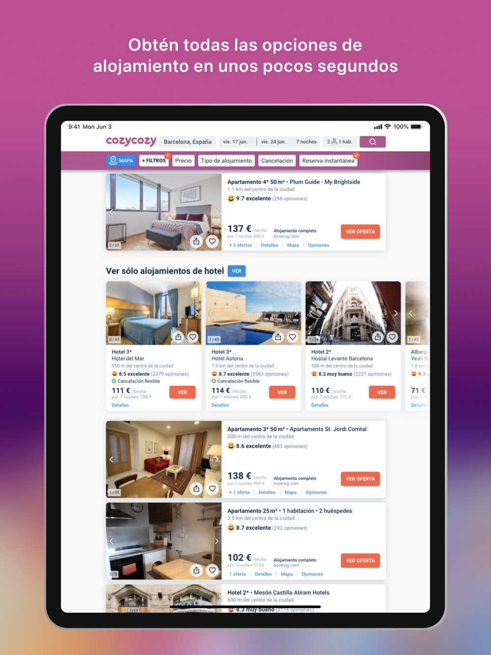 Descárgate la app de cozycozy.com para iOS14 y accede en tiempo real a millones de opciones de alojamiento por el mejor precio. ¡Incluso resérvalas a última hora!