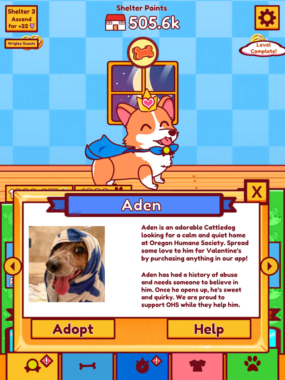 Meet your very own cute, cuddly corgi to take care of. Tap your corgi to pet him and love on him! Together, you'll build up your own animal shelter to take care of your corgi and other pets rescued along the way. Even while you're away and idle, food and toys keep your corgi loved and your shelter growing! Your pet rescue is just getting started.