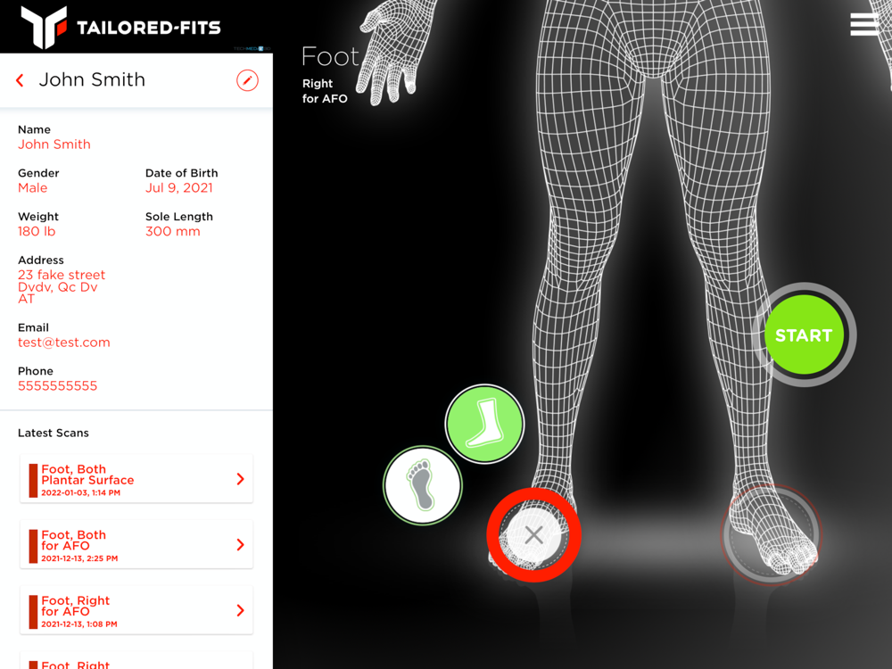 The TAILORED-FITS app is a portable and easy to use 3D-scanning solution for lower legs and plantar surfaces of feet. Perform a scan quickly with an attached Structure Sensor (TM) and generate stunning 3D-data of these body parts. After uploading the data, TAILORED-FITS produces 3D-printed customized insoles for your feet only. This app resembles the first link in the TAILORED-FITS digital supply chain for sport shops, to deliver fully custom 3D-printed sports gear.