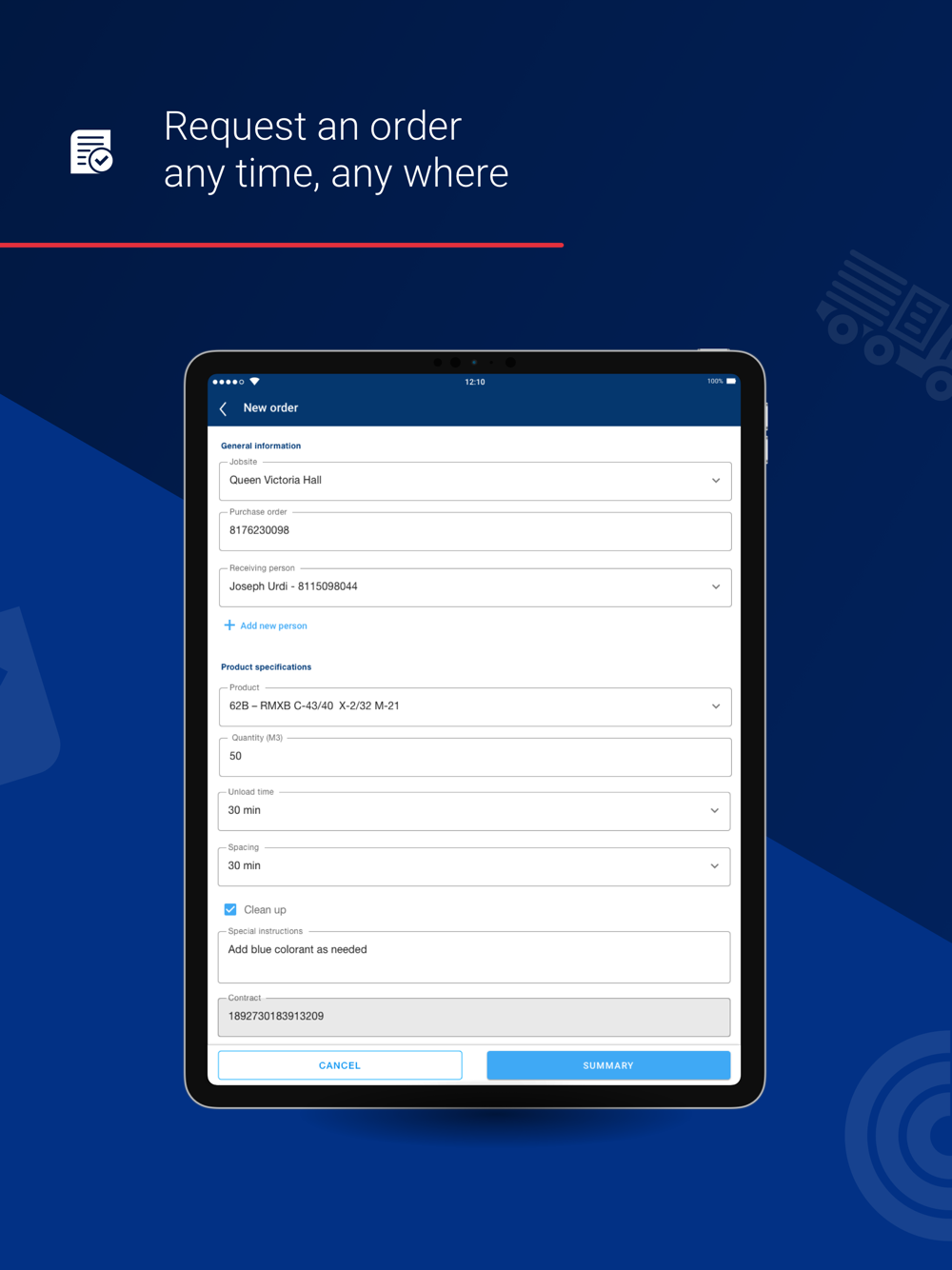 With Ready Mix Go app you can create and review the status of all your orders!