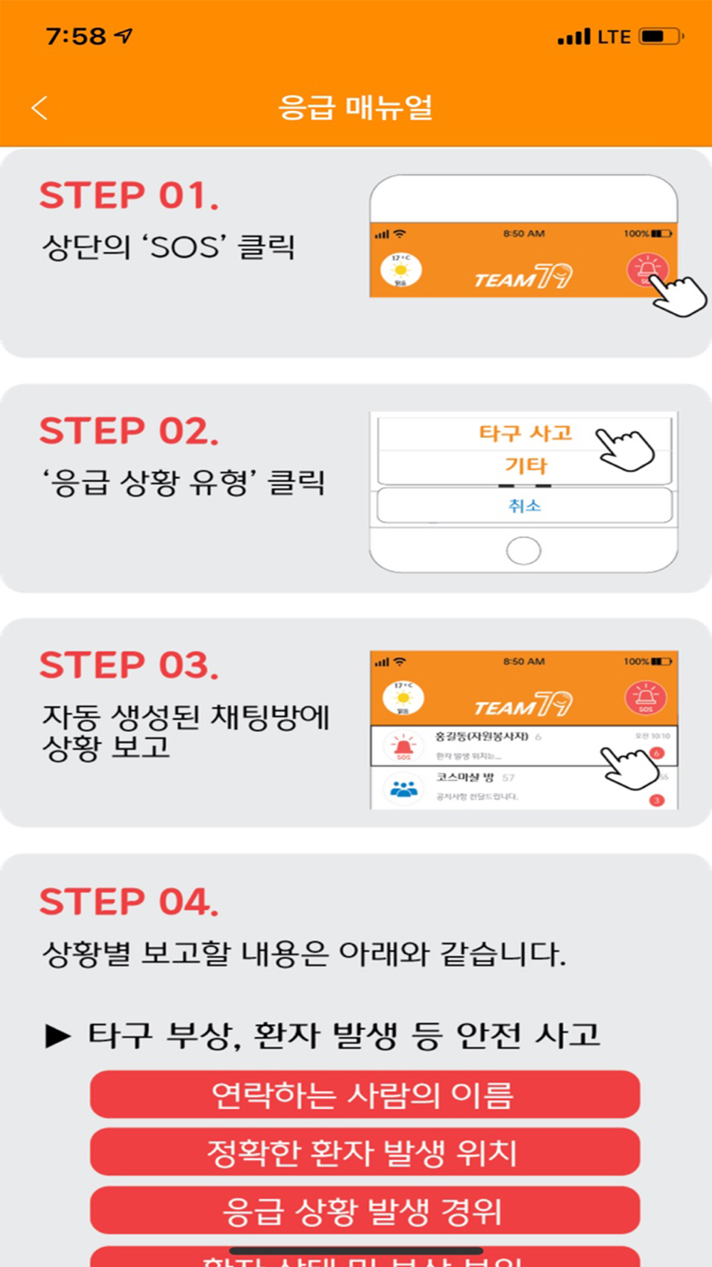 뿐만 아니라 응급 상황 발생 시 위치 확인과 동시에 운영진과의 실시간 소통을 통해