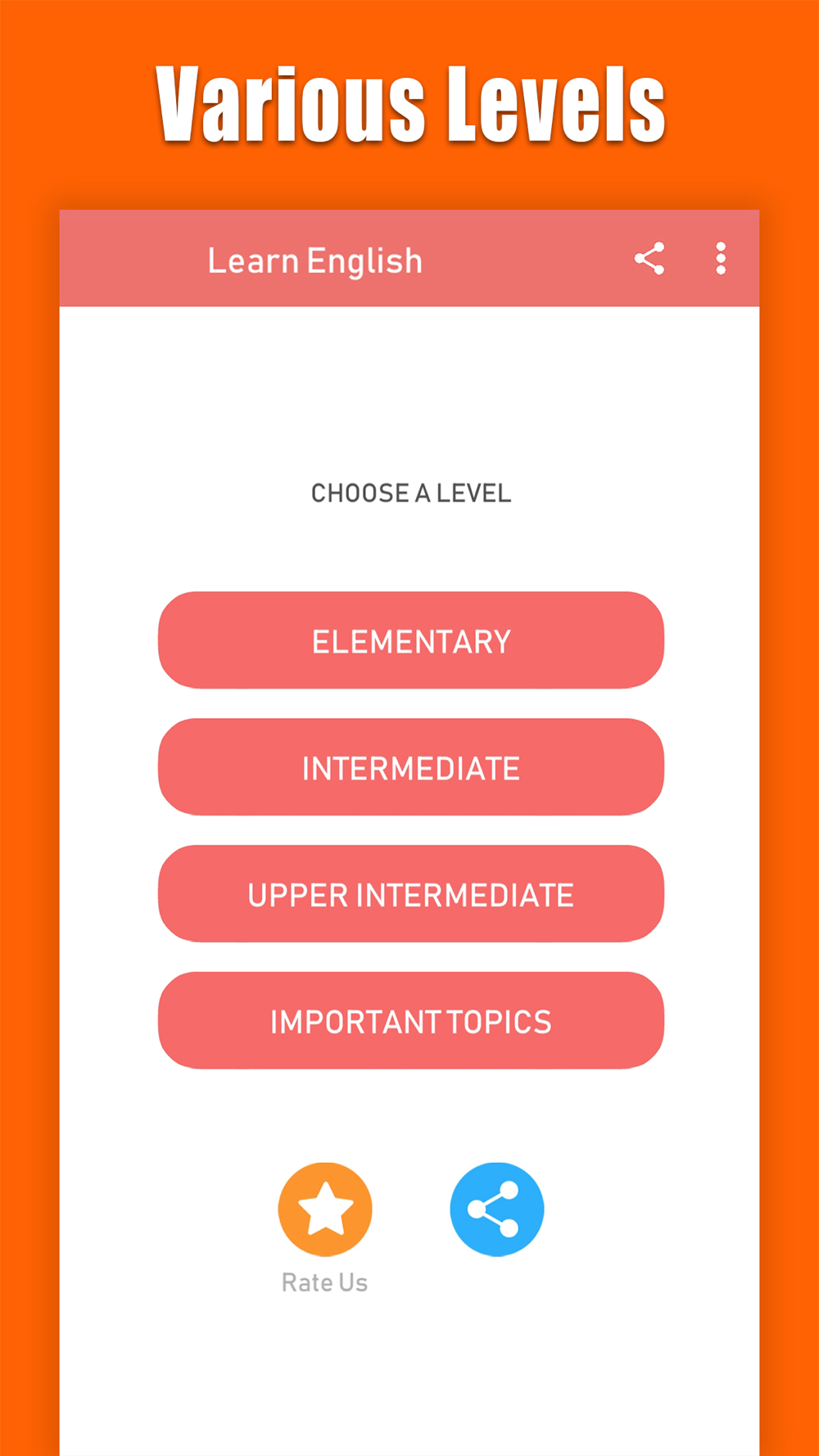 - All levels: Elementary, Intermediate, Upper Intermediate and also Important Topics