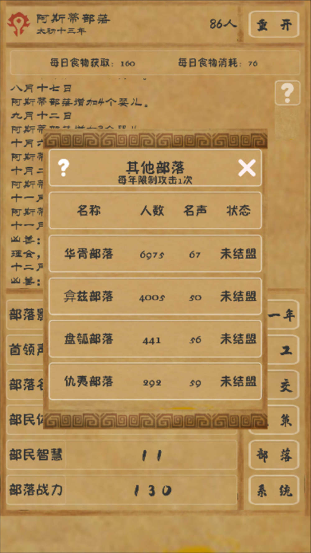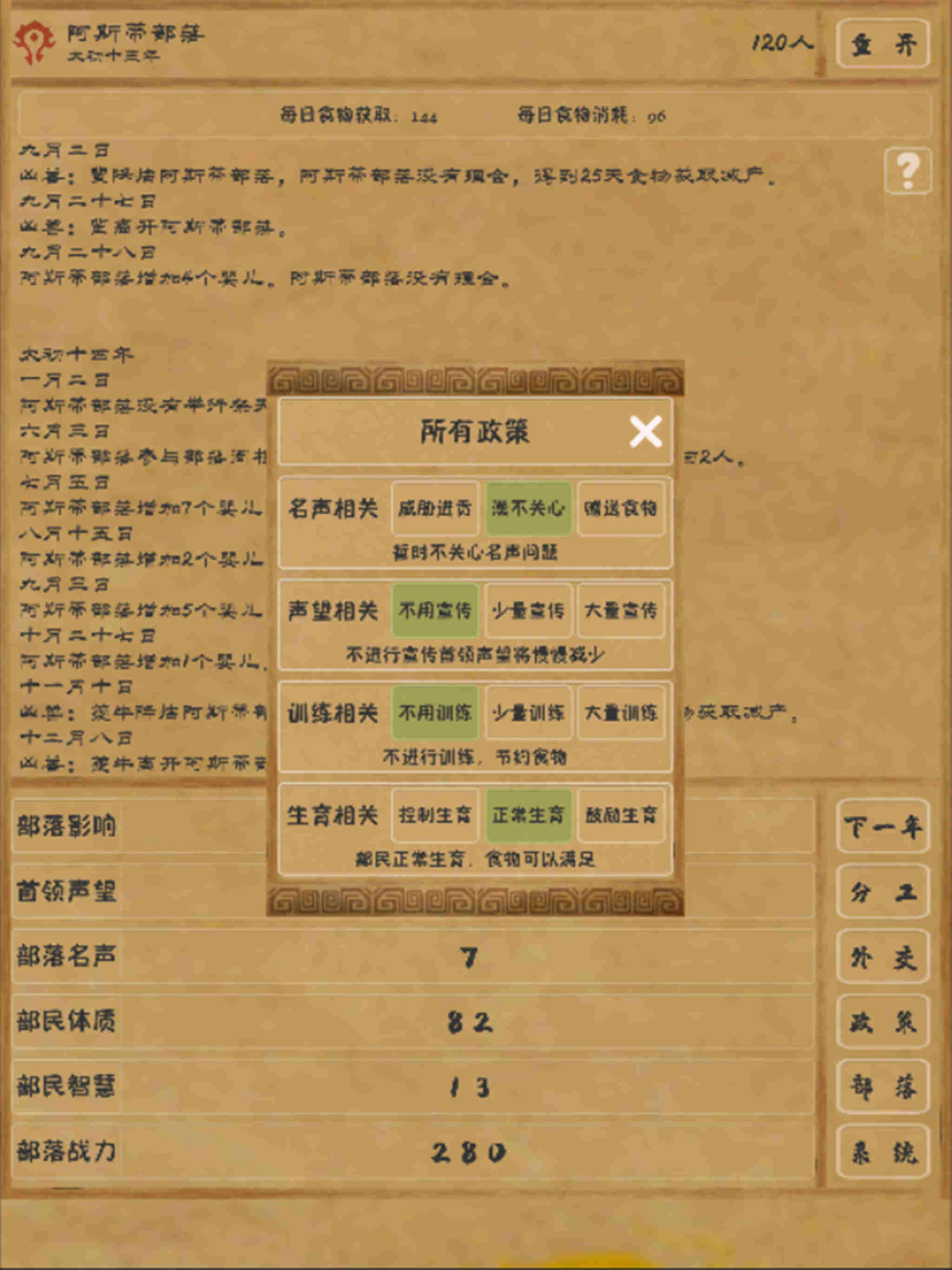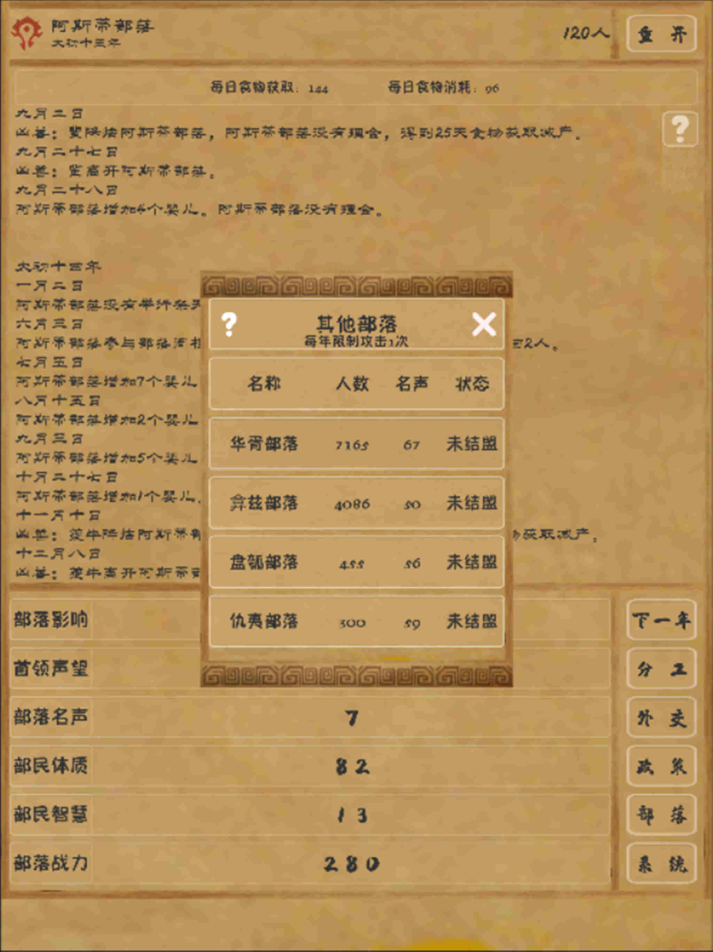 模拟经营远古部落,你来当首领,怎么分工,如何进行外交,如何制定政策,如何处理突发事件,都由你说了算,你的目标就是努力发展部落以迎接世纪洪水的考验。
