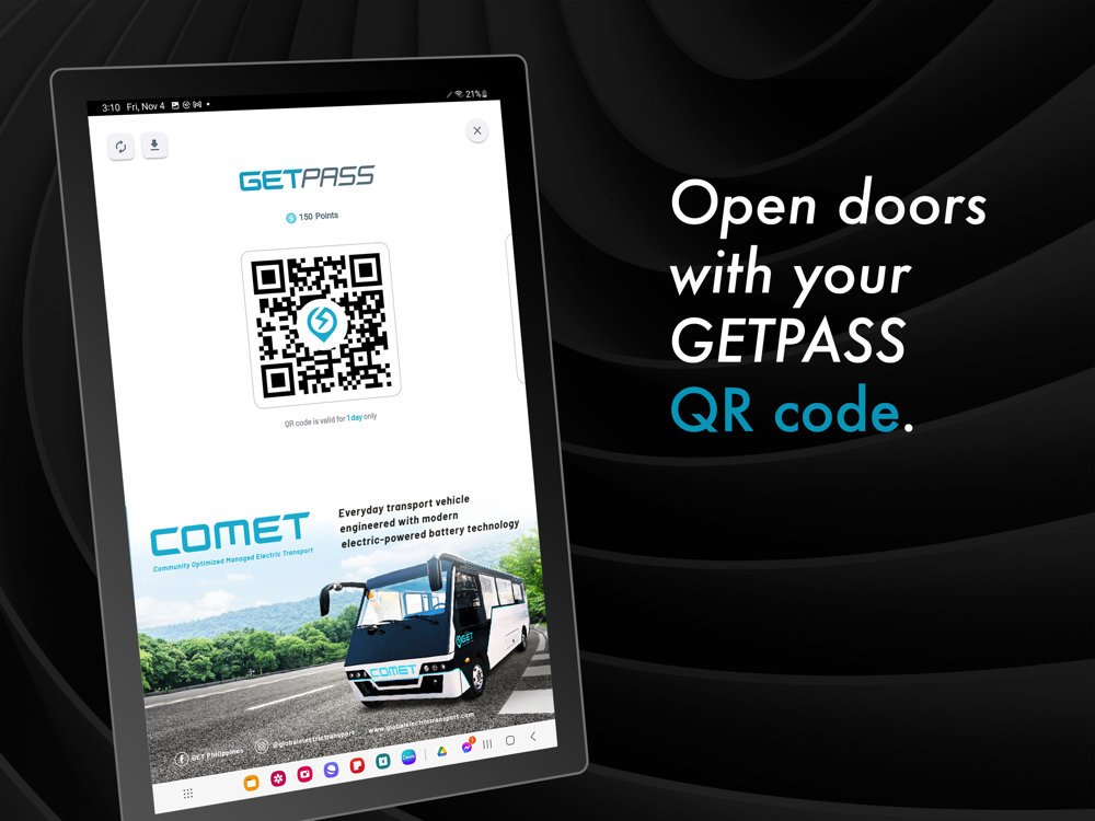 The GET-PASS App is your portal to a world of digital commerce and benefits, one that acts as your ID, ticket, and credit card through QR code and payment integration. Use it to ride on public transport, access your bills, check the latest deals, pay for goods and services, book appointments and win prizes.