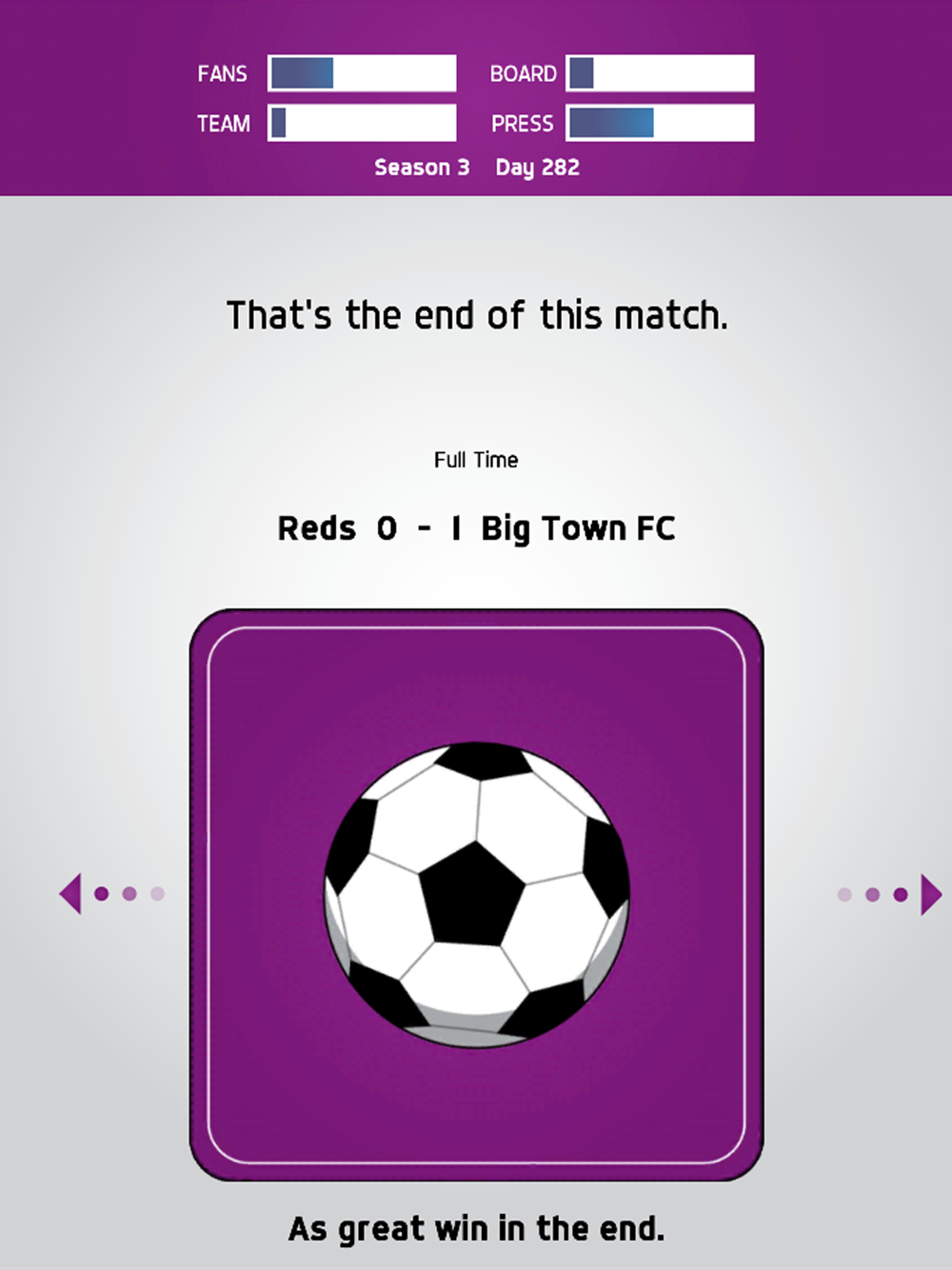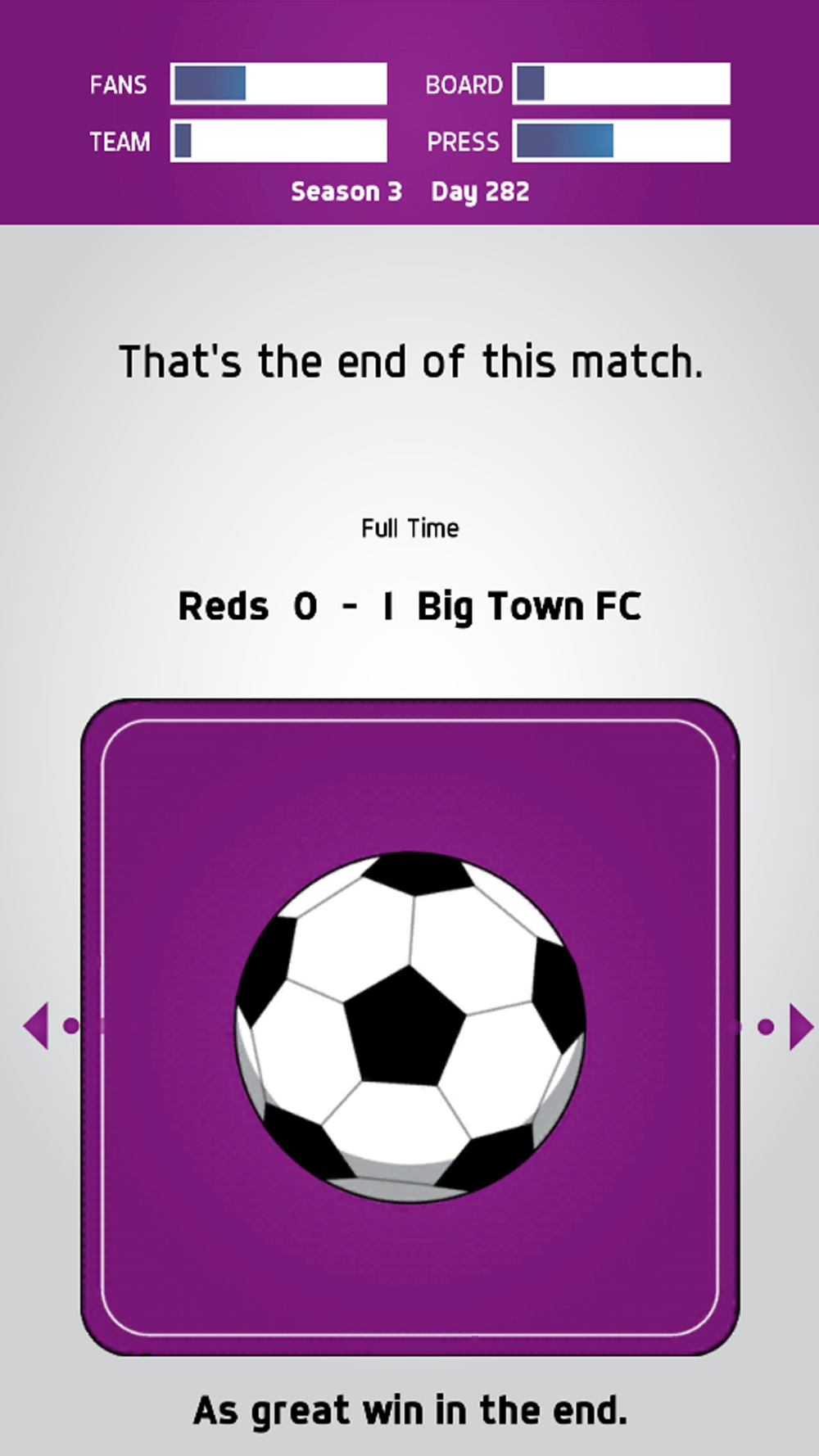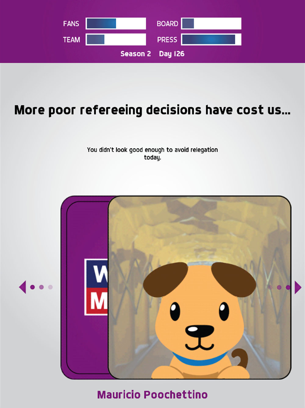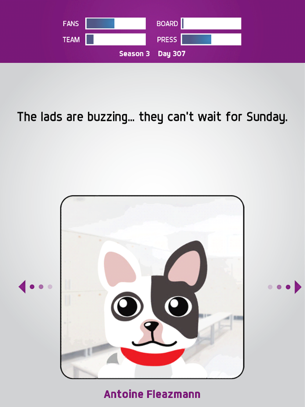 Take the job of managing one of the world’s biggest clubs, or work your way up with a team of waifs and strays more used to relegation dog fights – the choice is yours! Whether it's dealing with terrible VAR decisions, rogue players or greedy agents, Woofball Manager is a ‘choose your own adventure’ game where you run the show. Make all the key decisions via a card dragging mechanic – simply move the card left or right to see your choice of answers and then let go to select.
