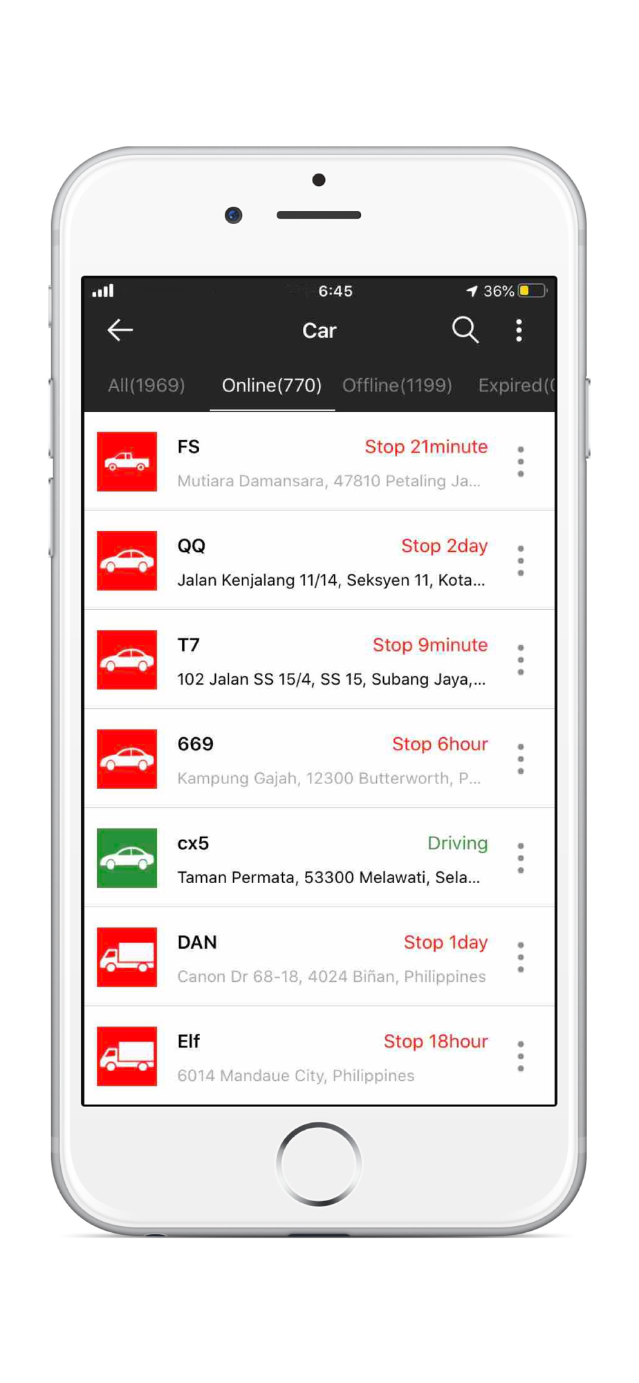 7. Position Tracking: Track live geographic location of vehicle via map street view.