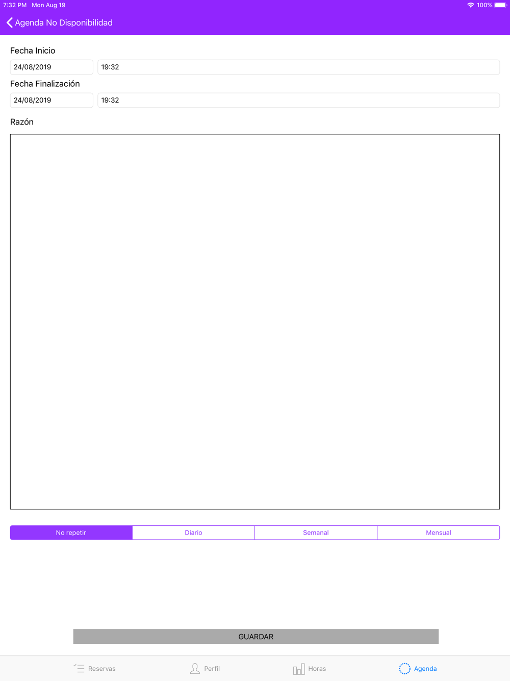 Solicitud periodos de no disponibilidad esporádicos o continuados
