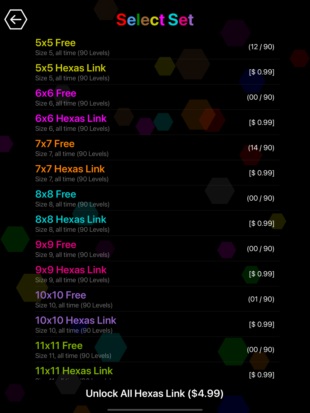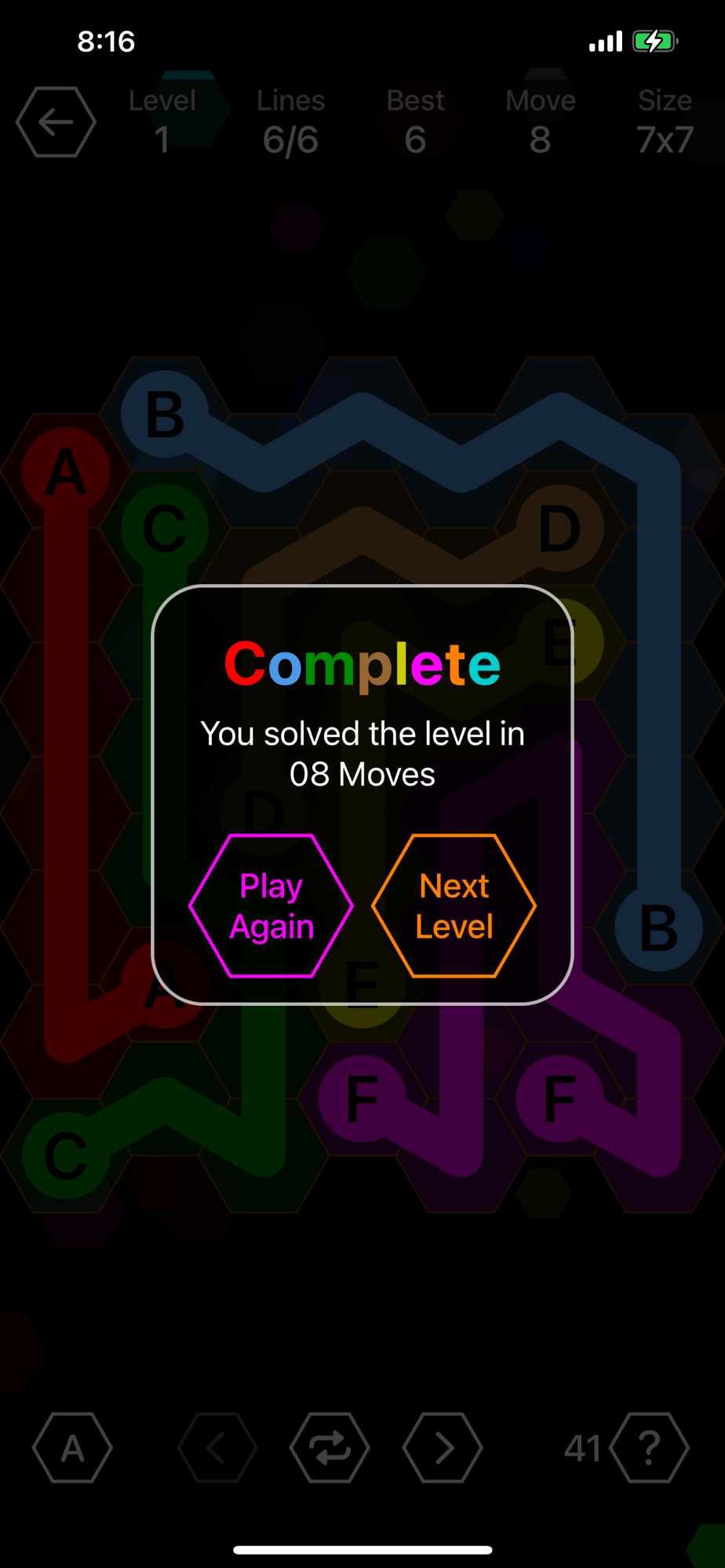 To Solve puzzle, create Hexas Lines by connecting matching pairs of hexagonal dots without crossing each other.