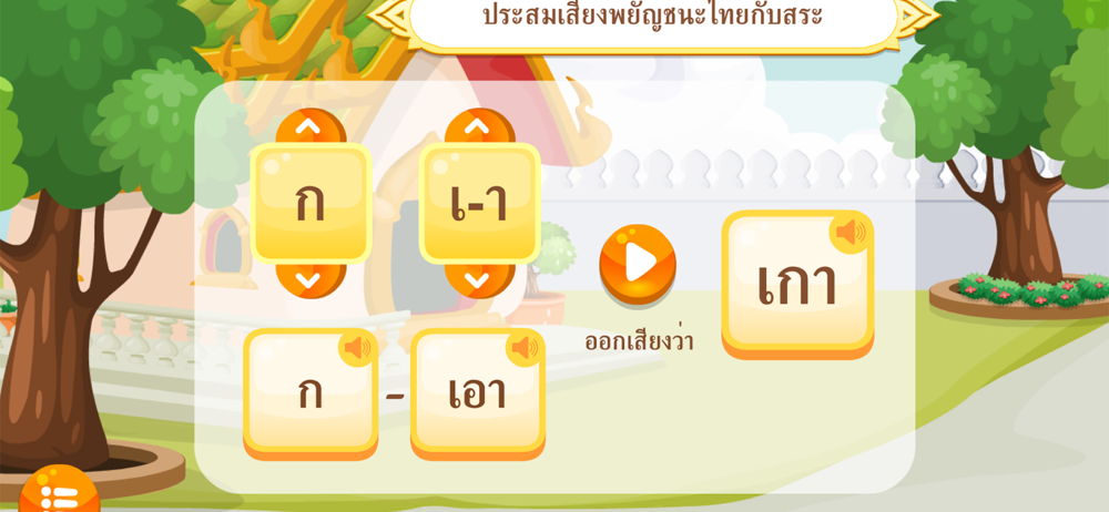 - เรียนรู้รูปและเสียงของสระต่างๆ ในภาษาไทย และสามารถฝึกฝนกับชุดสระย่อยๆ ได้
