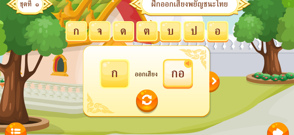 - เรียนรู้รูปและเสียงของพยัญชนะต่างๆ ในภาษาไทย และสามารถฝึกฝนกับชุดพยัญชนะย่อยๆ ได้