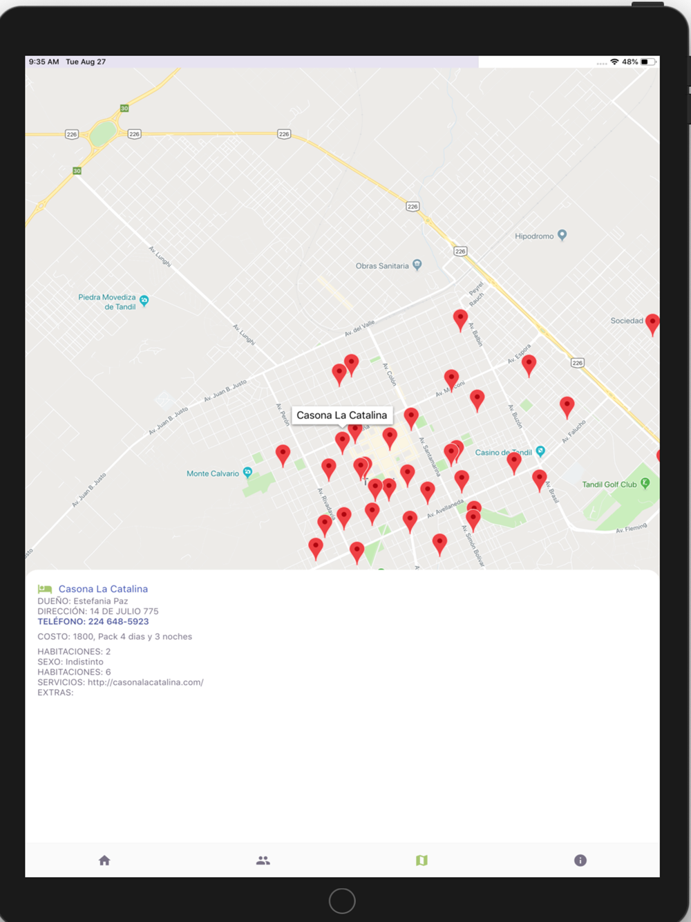 Además, permite ver hospedajes en la ciudad de Tandil, sus características y precios, sin necesidad de salir de la reunión.