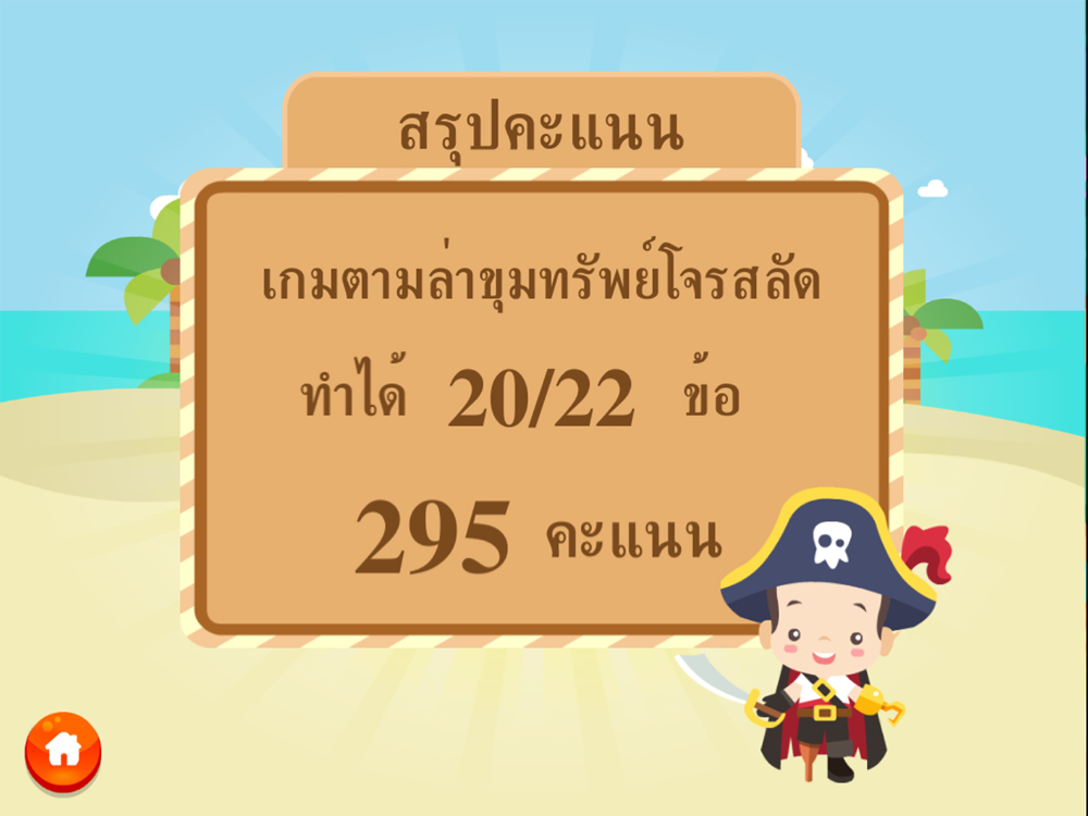 Application เรื่อง “ตามล่าขุมทรัพย์โจรสลัด” มีเนื้อหาสาระเหมาะสม และสอดคล้องกับหลักสูตรแกนกลางการศึกษาขั้นพื้นฐาน