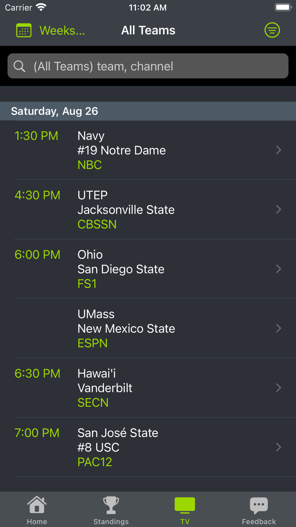 "...love the TV schedule. No longer have to look at my cable guide to look at my game schedule during College Game-day."