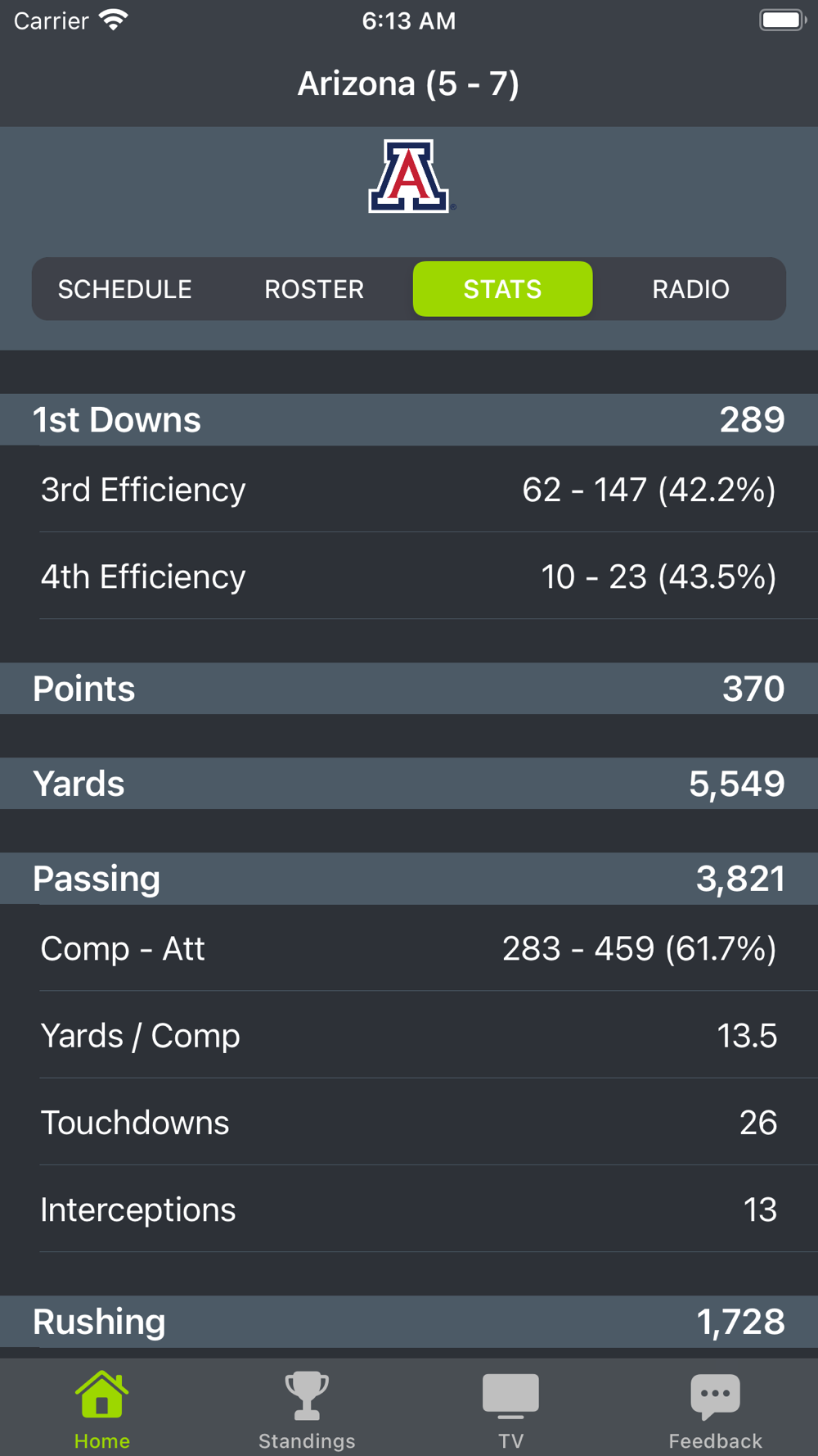 Arizona Football Schedules provides scores, links to live radio, schedules, tv channels, player profiles, and game matchups in one location.