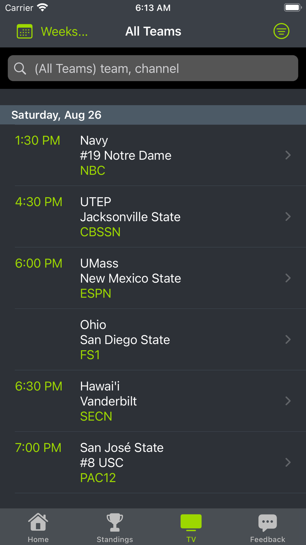 "...love the TV schedule. No longer have to look at my cable guide to look at my game schedule during College Game-day."