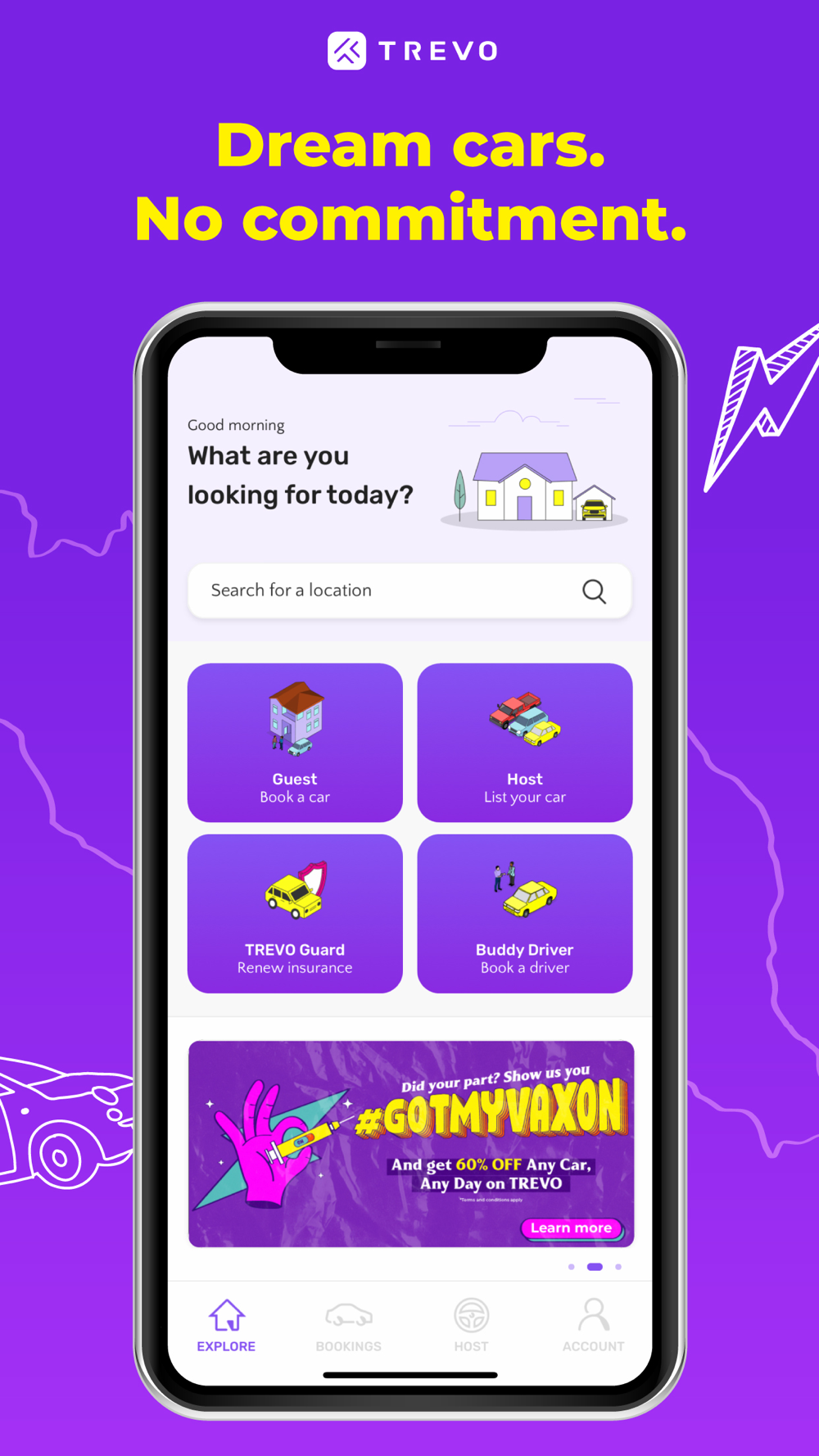 Trevo envisions a world where the community is closer, mobility is better, and travelling is easier. We aim to help our renters reach where the trains don’t, and to fill the gaps in their journey by exploring with any car, while hosts earn extra income to finance their cars when improving mobility in Malaysia at the same time.