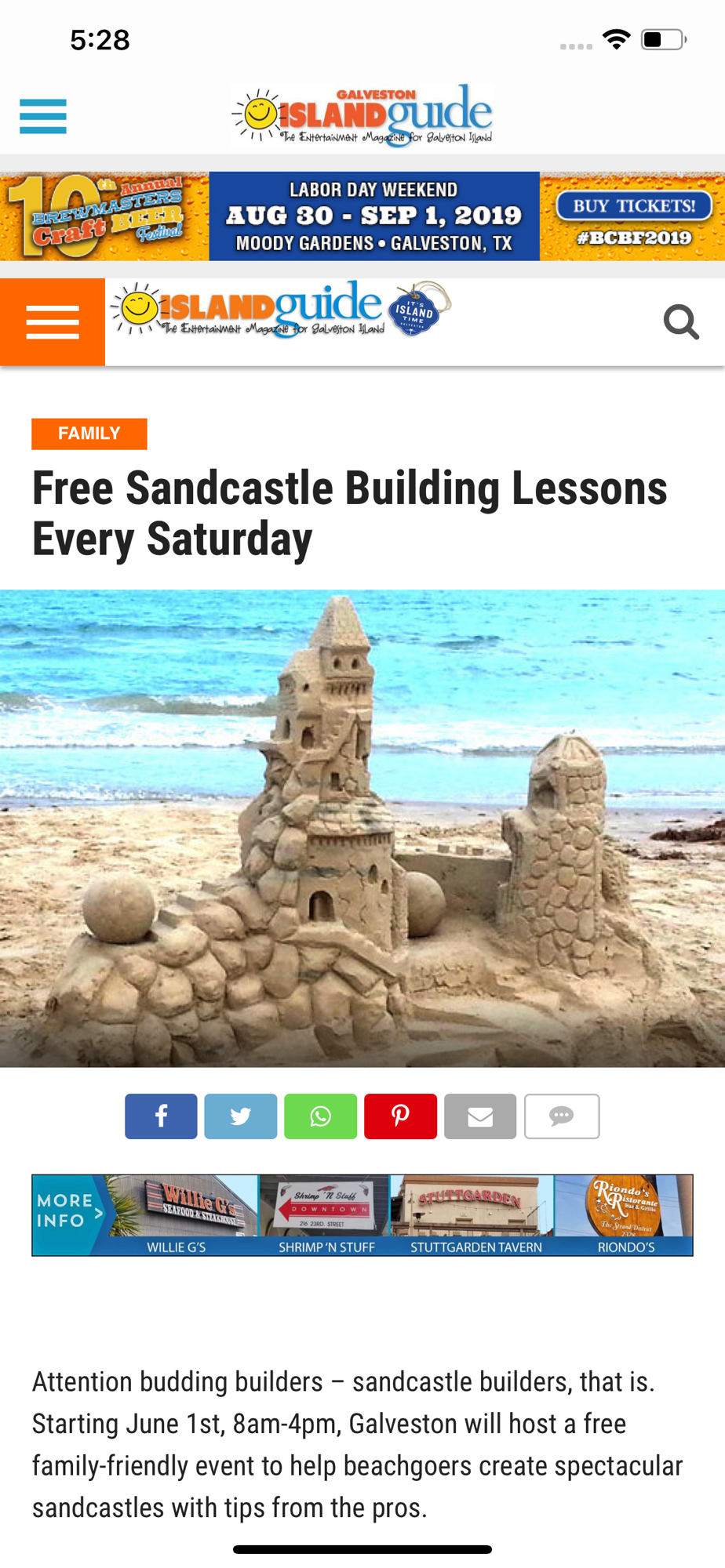 Galveston Guide features events and things to do in Galveston TX including festivals, live music, family fun, Moody Gardens, Pleasure Pier and tons more. Galveston Guide has a calendar, live music gig guide, festivals, calendar and more. These events are presented in a date-driven format via a calendar which is unique and perfect for people new to the area seeking something to do in Galveston TX.