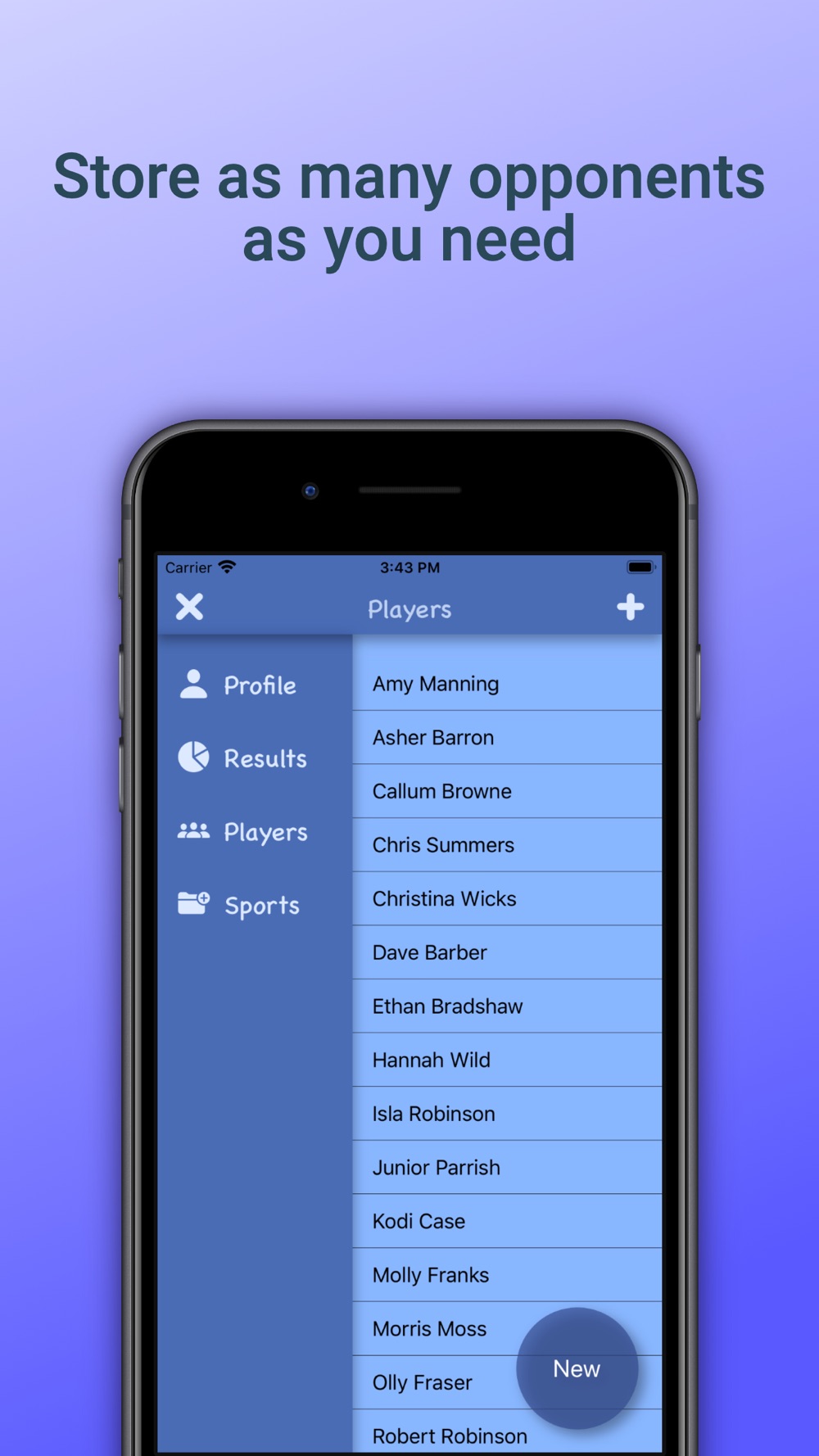 - Store results from as many Sports and Opponents as you need.