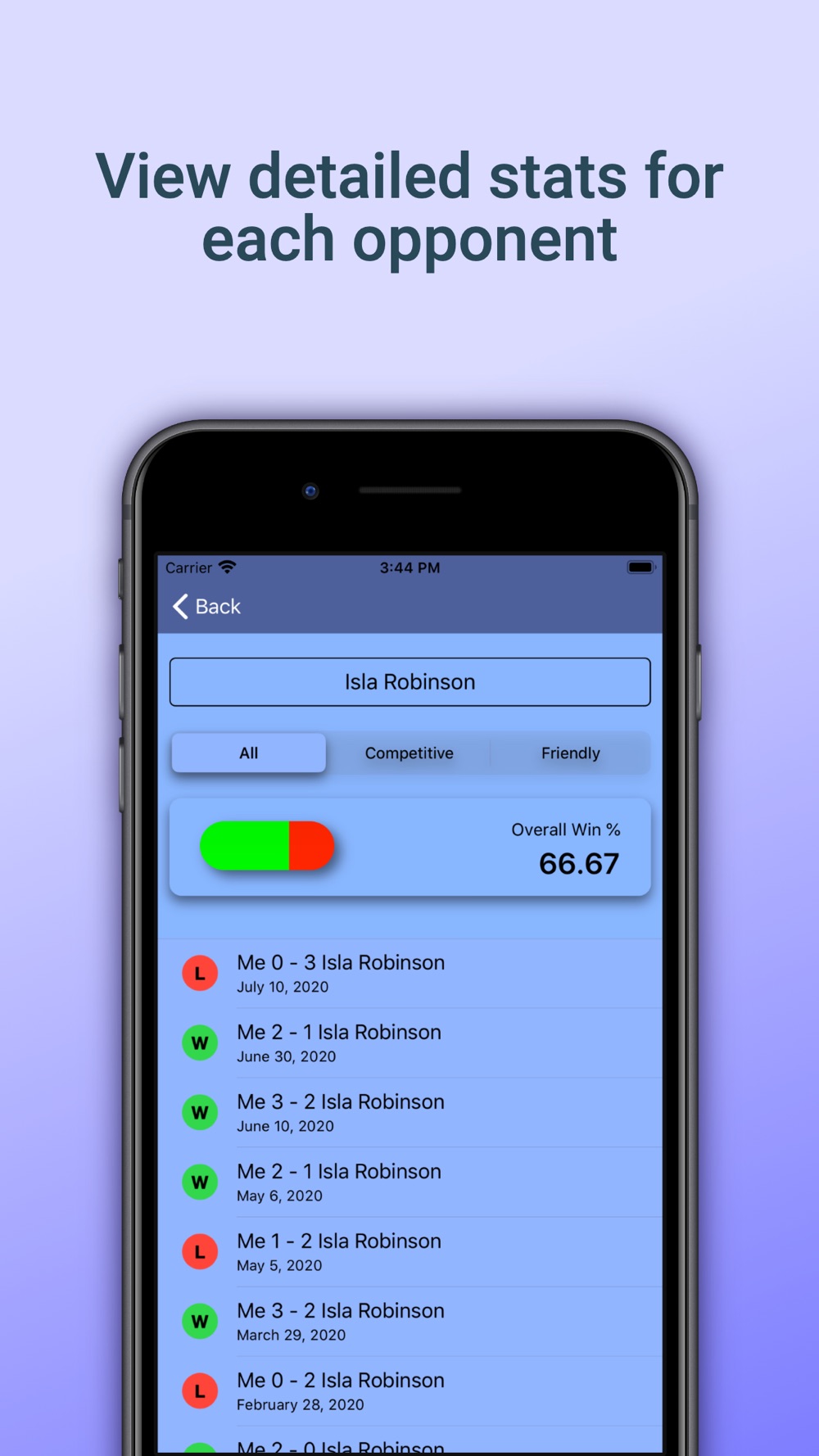 Whether it's a friendly match at your local club or an Olympic final, never forget a result with Result Log!