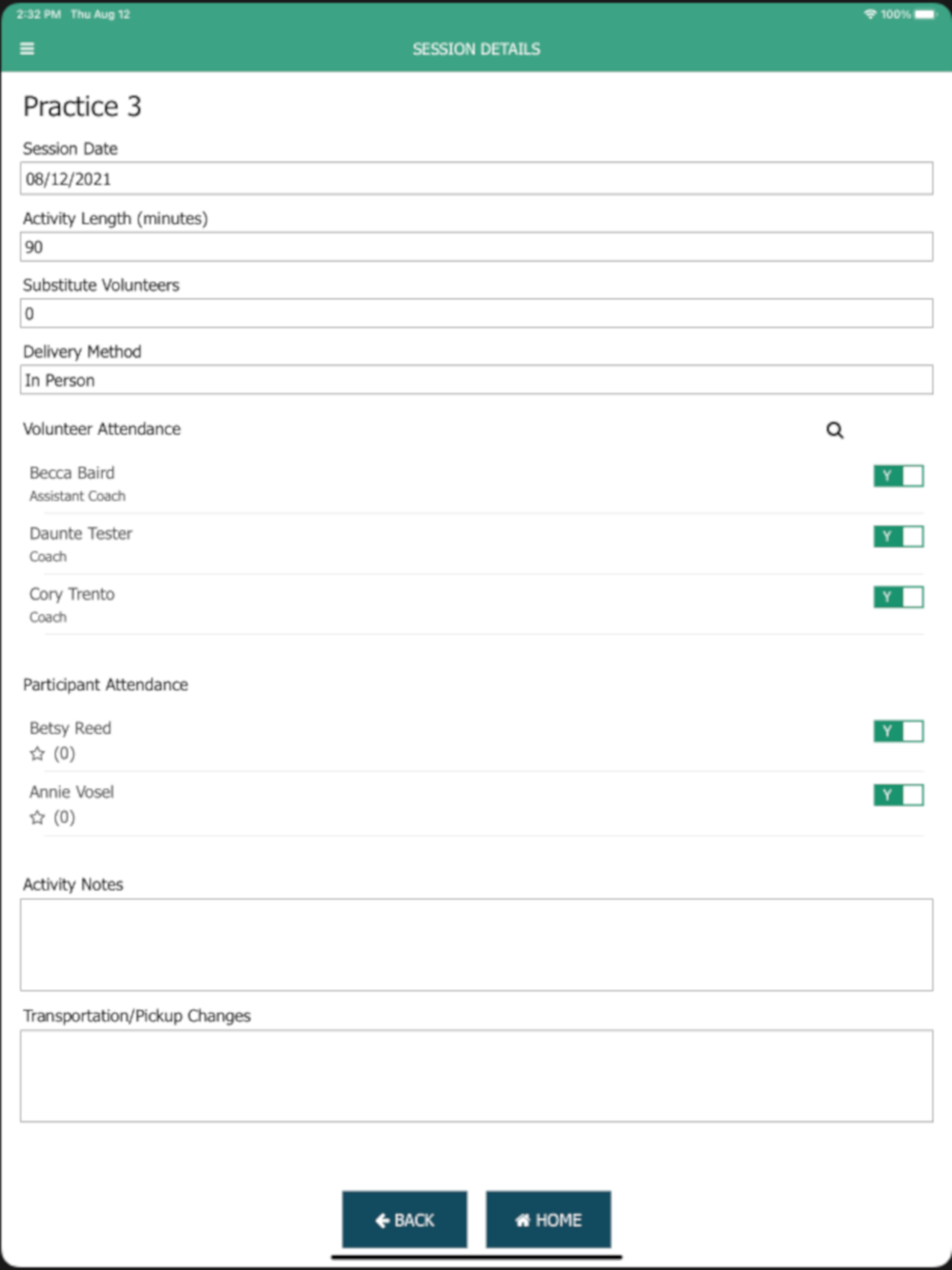 • Easily track attendance for all participants and volunteers in each session of the program.