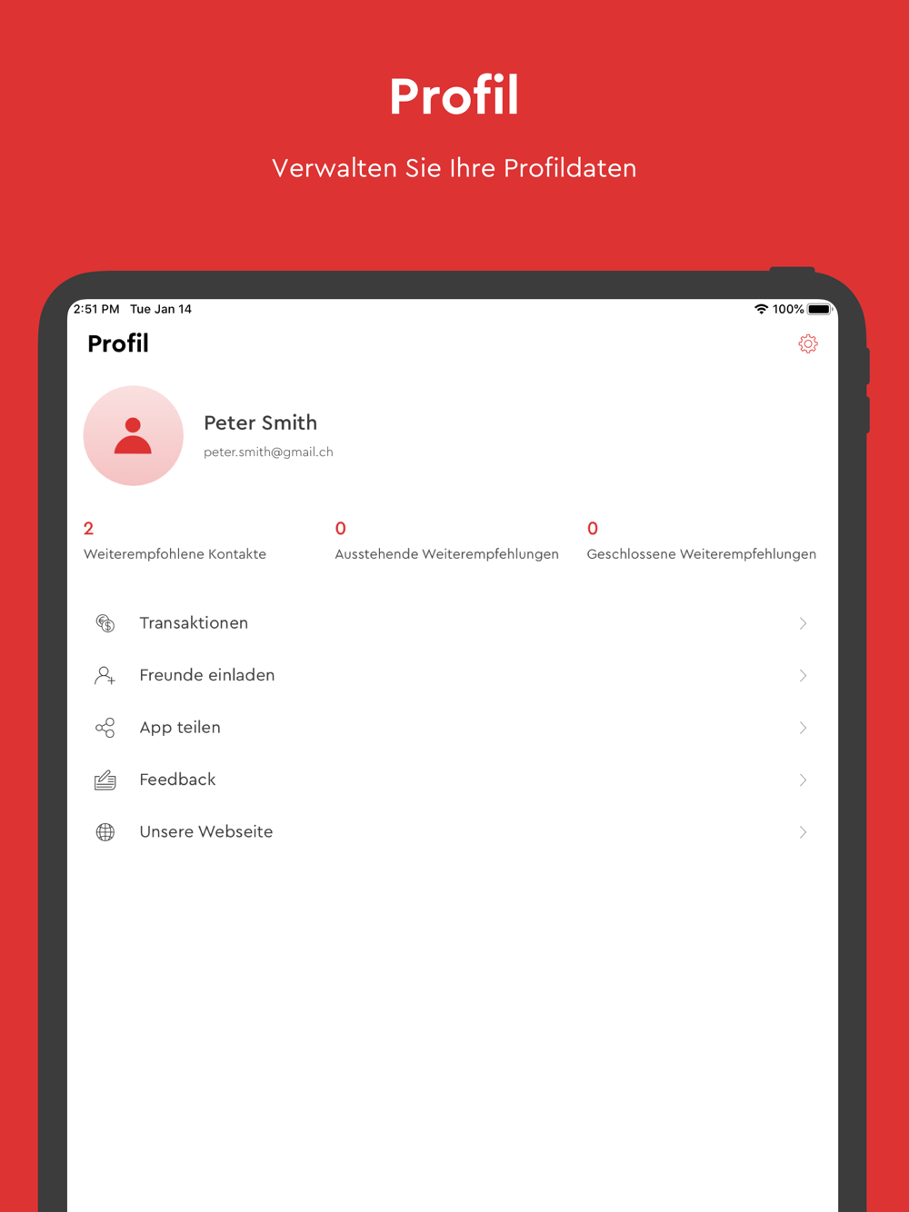 Erhalte Geld für jede Empfehlung, bis zu 50 Chf.- pro Abschlus, plus Bonus Sistem!
