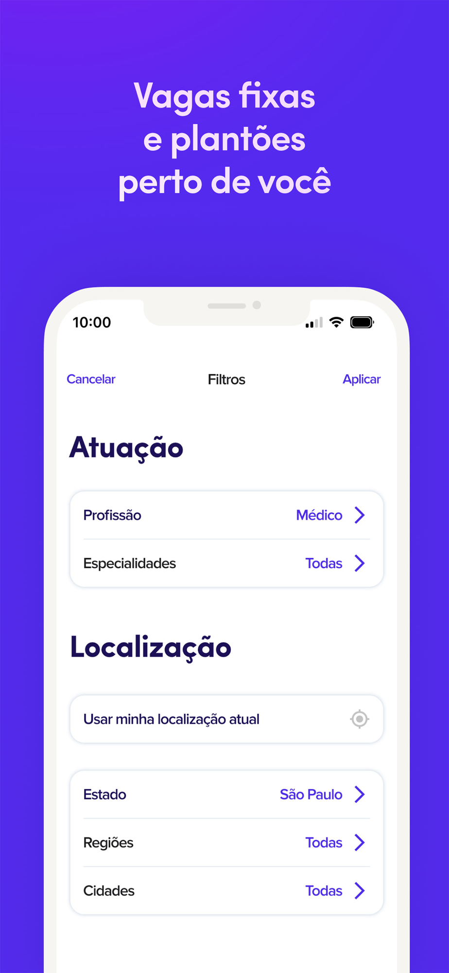 - Filtros: Filtre as oportunidades de acordo com sua profissão, especialidade e localização.