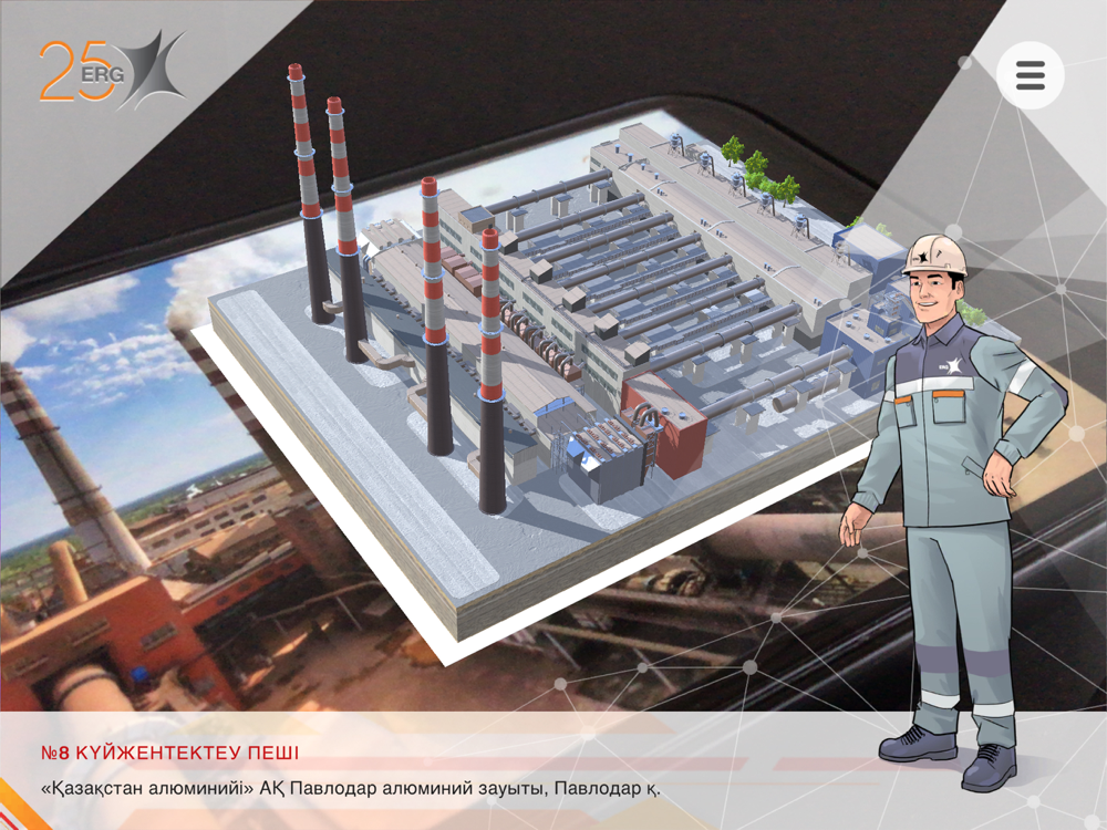 Благодаря приложению с дополненной реальностью ERGland, из любой точки мира можно побывать в «родных» городах Евразийской Группы в Казахстане, а также в Демократической Республике Конго и Бразилии. Посредством наведения смартфона на фотографии производственных и социальных объектов, появившихся за 25 лет работы компании, легко рассмотреть 3D-модели зданий, ознакомиться с видео производственных процессов на промышленных гигантах, окунуться в атмосферу спортивных мероприятий, детских праздников, побывать в скейт-парке и многое другое.