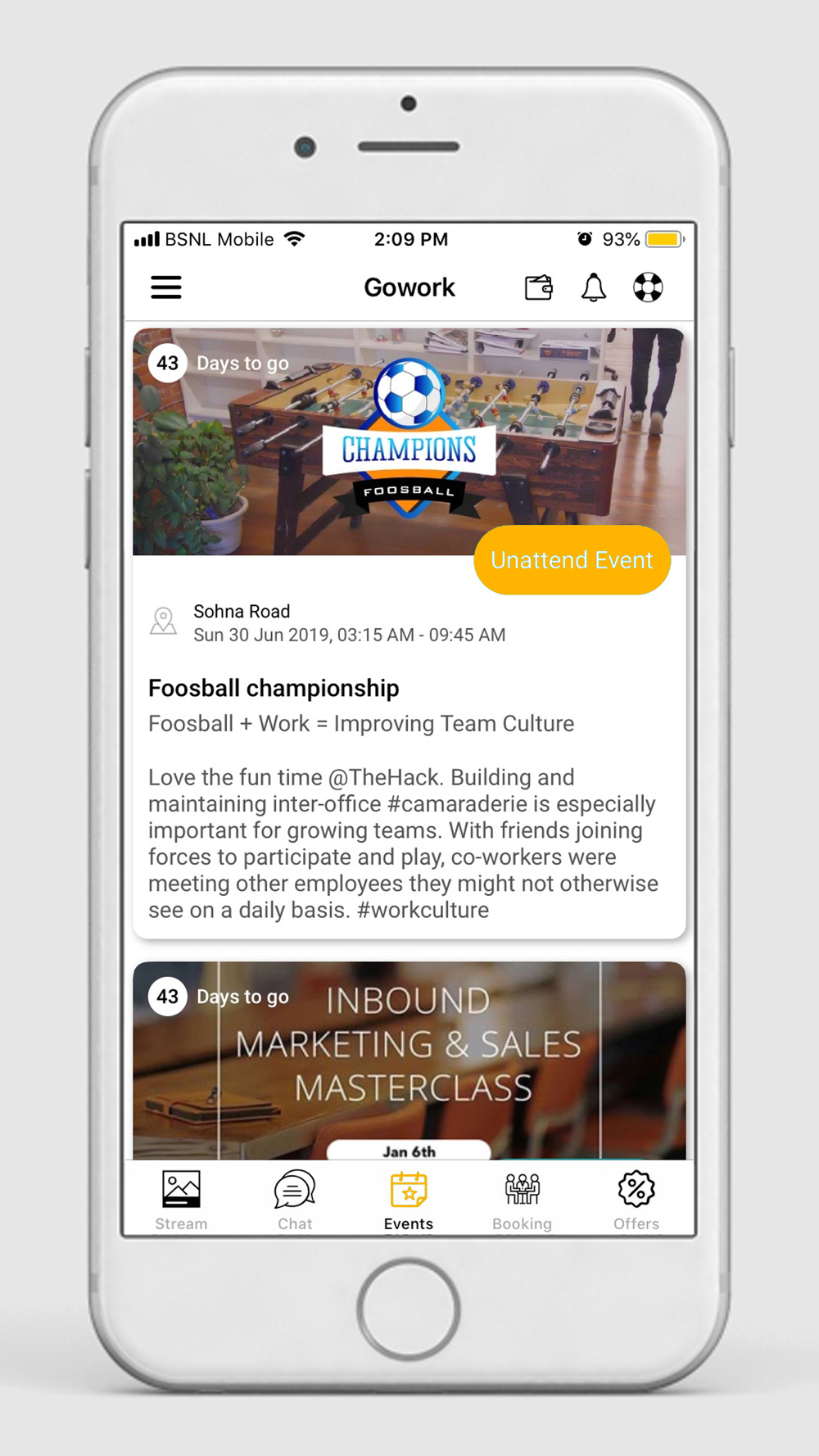 Gowork app helps members share their personal experiences, collaborate with each other, book meeting rooms conveniently and avail member only discounts that improves the overall experience of your workspaces.