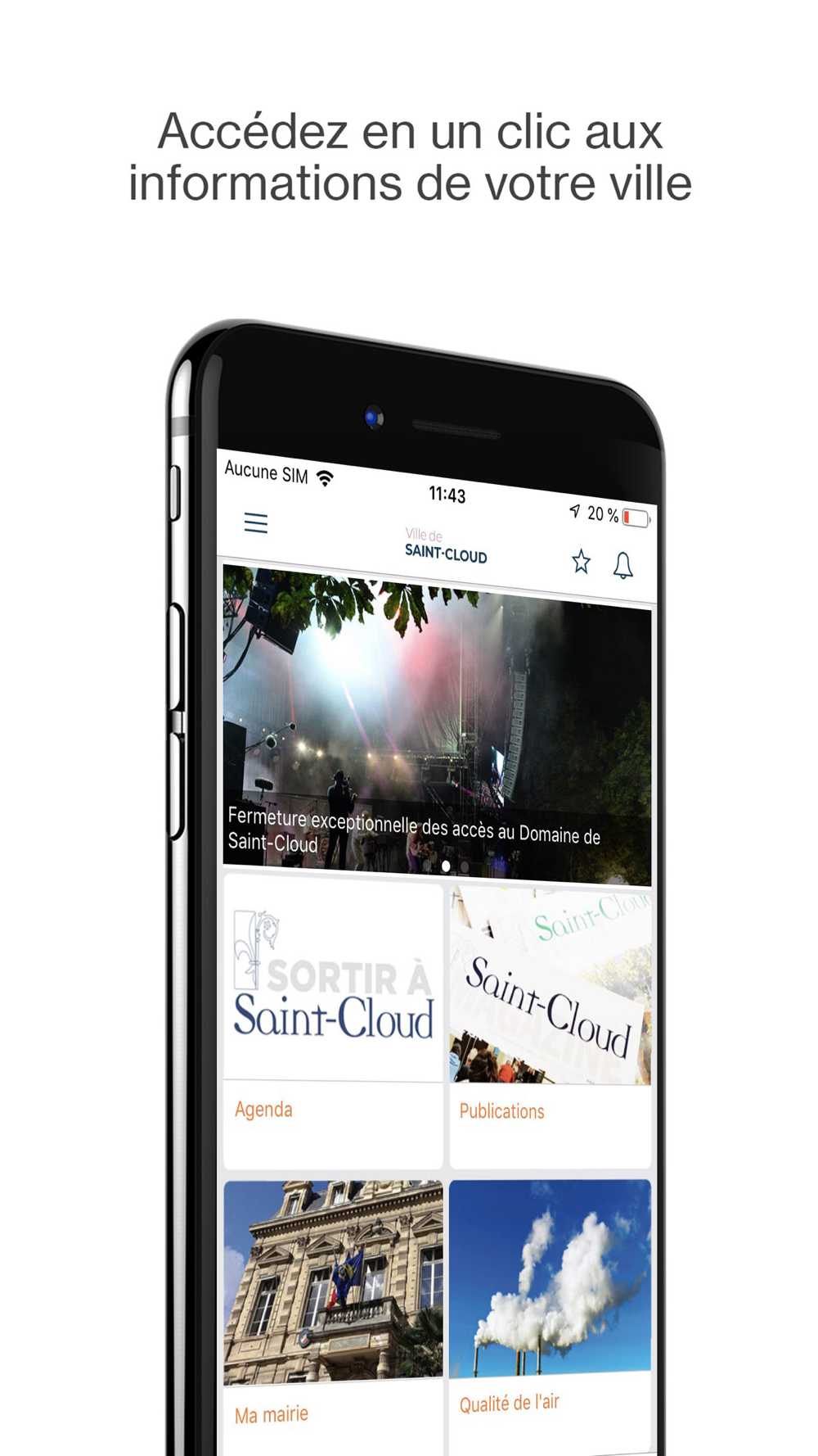 L'application de la ville de Saint-Cloud vous propose les actualités, l'agenda des manifestations, les numéros utiles des services de la mairie, des notifications en temps réels et bien plus encore :