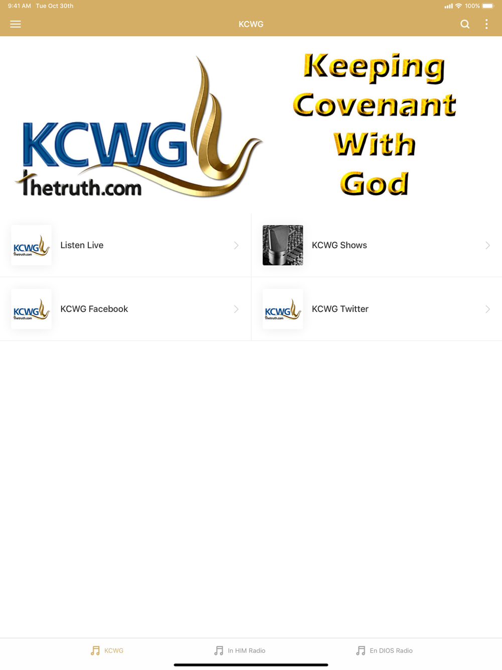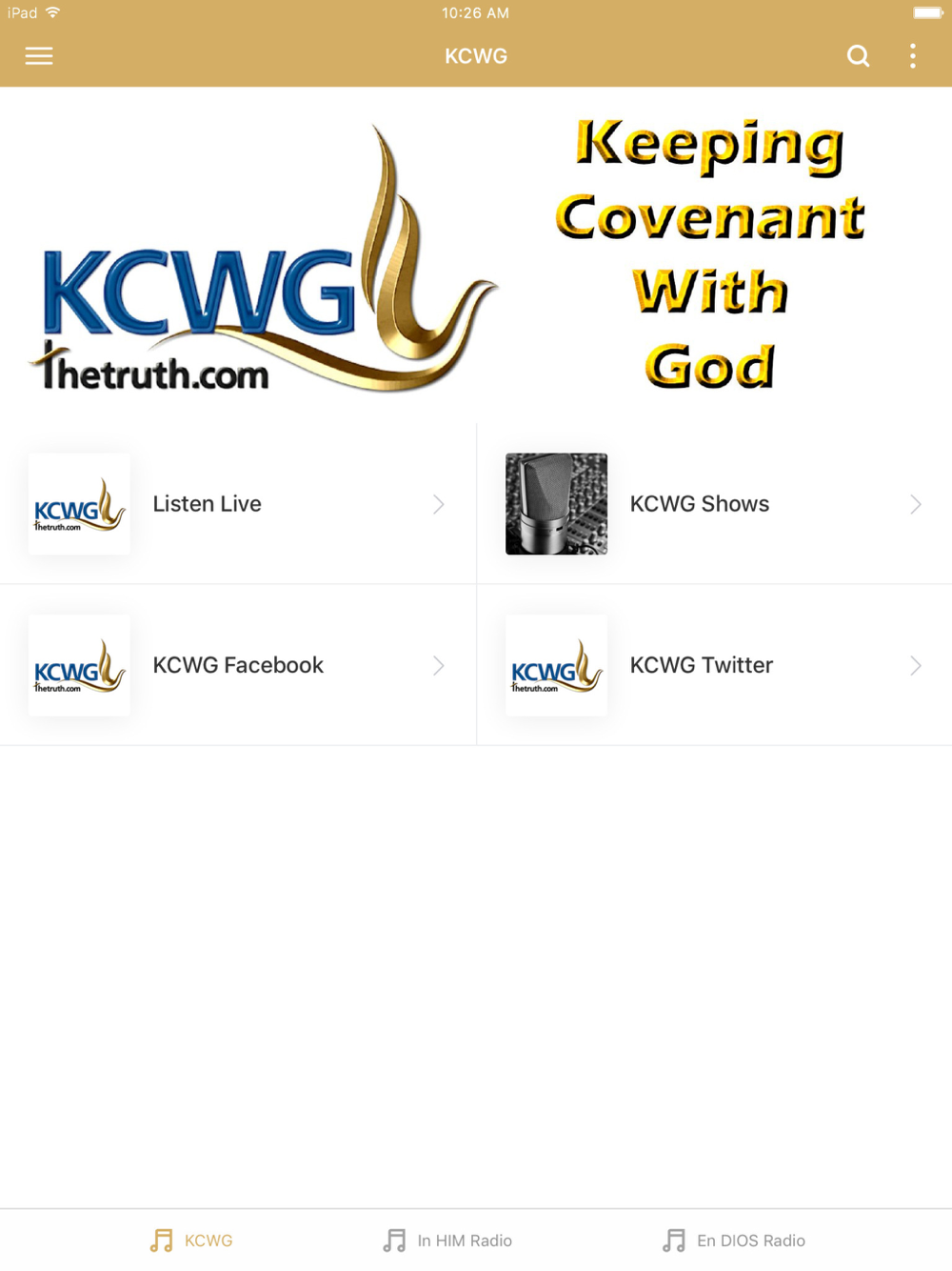 Listen to Live and Recorded programs from KCWGtheTruth.com, In HIM Radio.com, en Dios Radio.com, Rekindling the Flame of Romance programs and events. Play recorded broadcasts from past shows, get notified when new broadcasts are happening.