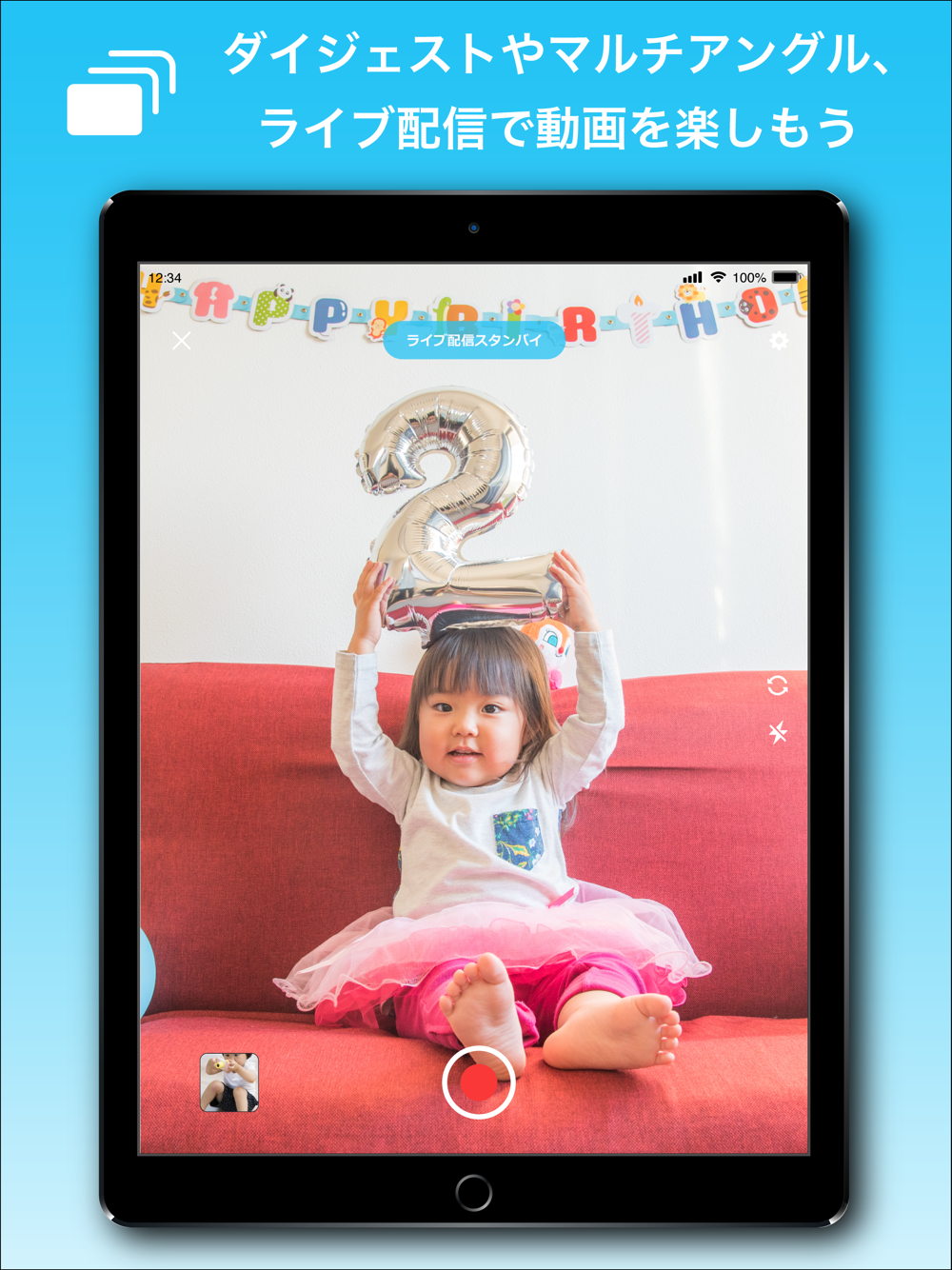 またライブ配信機能もあるので、スマホから手軽にリアルタイムの動画を共有することもできます。