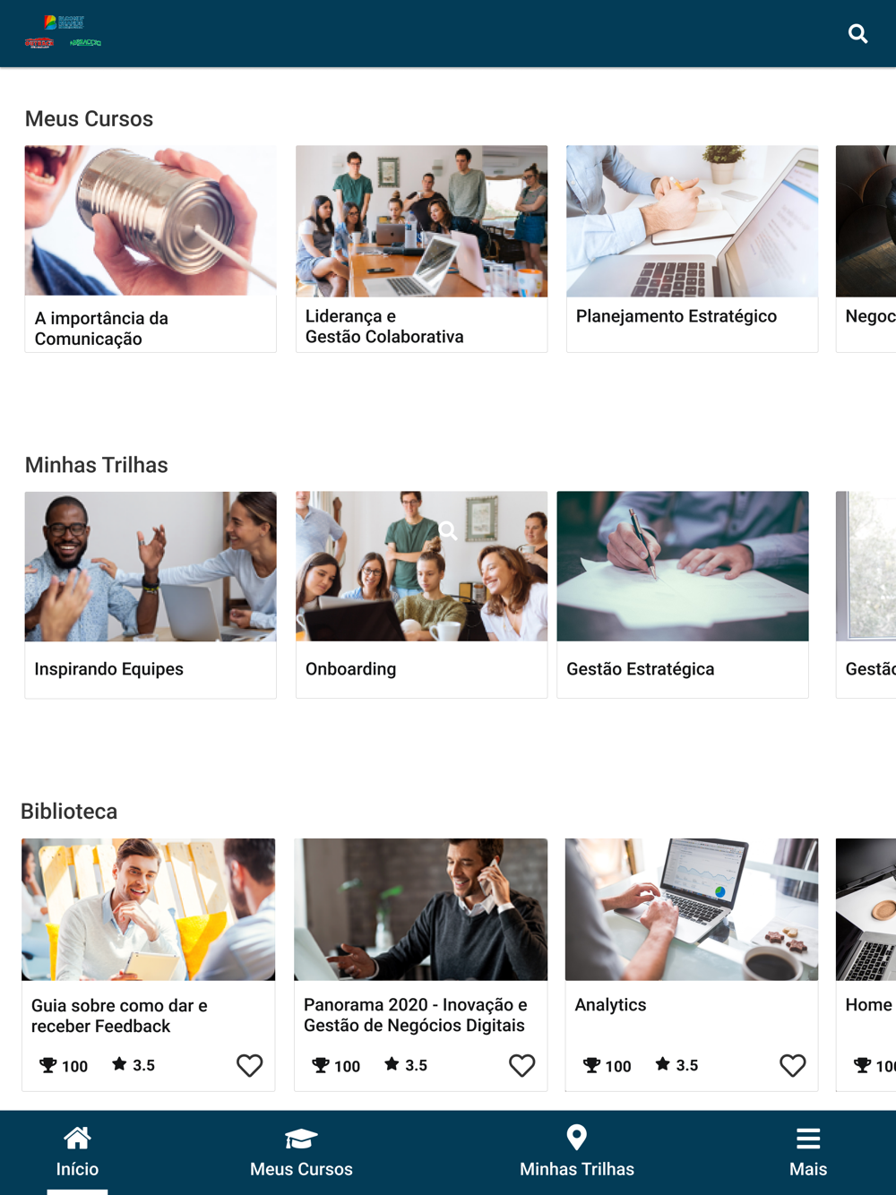 Aplicativo do LMS Bloomin' Academy que permite o uso móvel para executar cursos, trilhas de aprendizagem, incluindo de forma off-line.