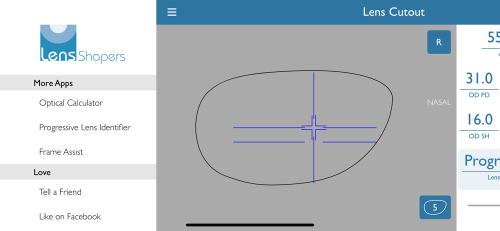 Lens Cutout app makes it super easy to check whether your frame shape will cut out in a given lens. The app lays out actual measurements on your iPhone or iPad screen.