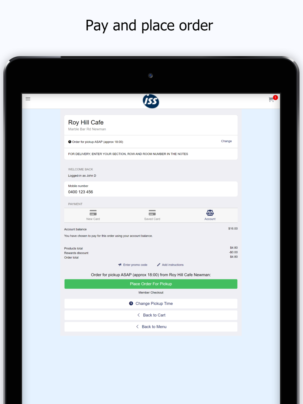 ISS World Online Ordering allows you to place orders from participating food and beverage retail outlets, as well as other facility services such as laundry, at these locations.