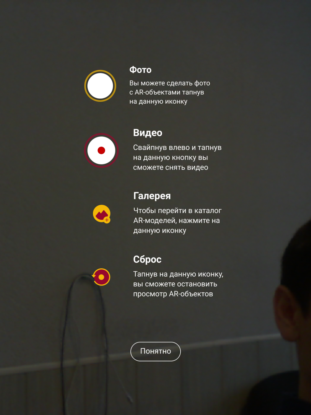 Для создания фото и записи видео с объектами в дополненной реальности, предоставьте разрешения на вашем устройстве.
