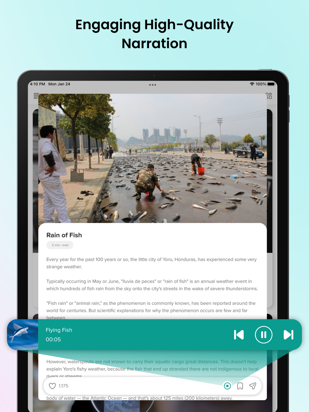 All facts have audio recordings. In this way, you can listen to the facts whenever you want while walking, cooking, or doing sports.