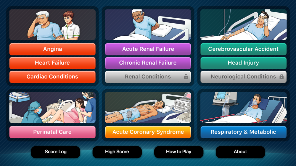 Single-Player, 2 Level, Virtual Hospital Game designed for nursing students and nurses to simulate a real hospital environment. This game is designed around 12 major diseases which allows the player to apply critical thinking skills in an interactive game.