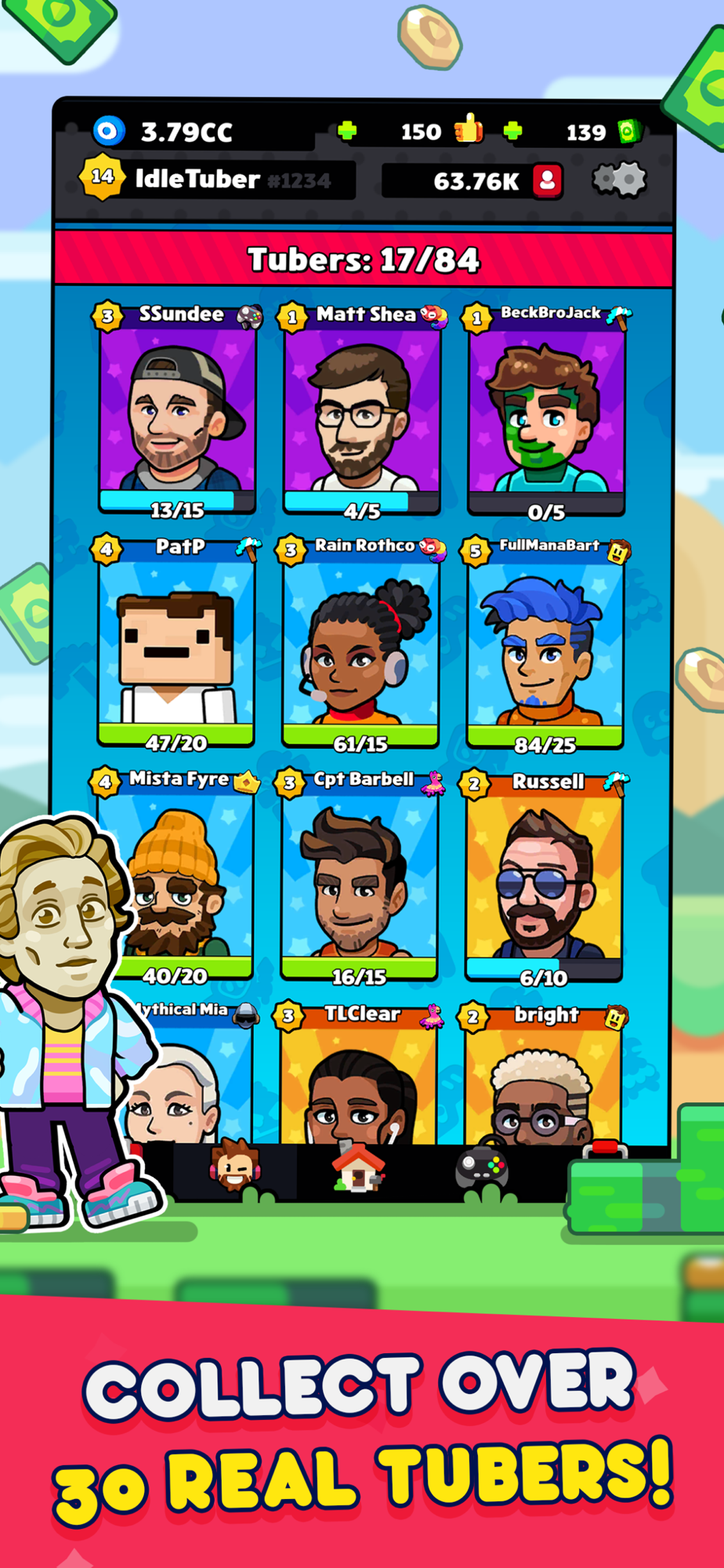 You can collect the following YouTubers in our Idle Tuber game: