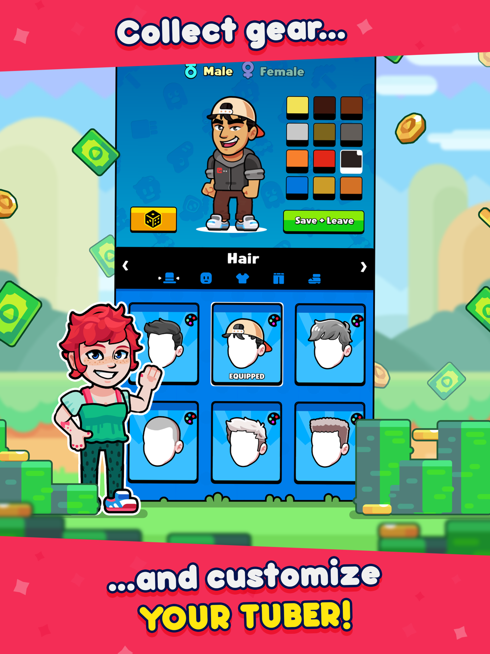 Start by creating your character, record videos to gain views, subscribers, and get fans. Unlock new games to record on and earn even more views! Hire an editor and partner up with real YouTubers to help you on your journey.