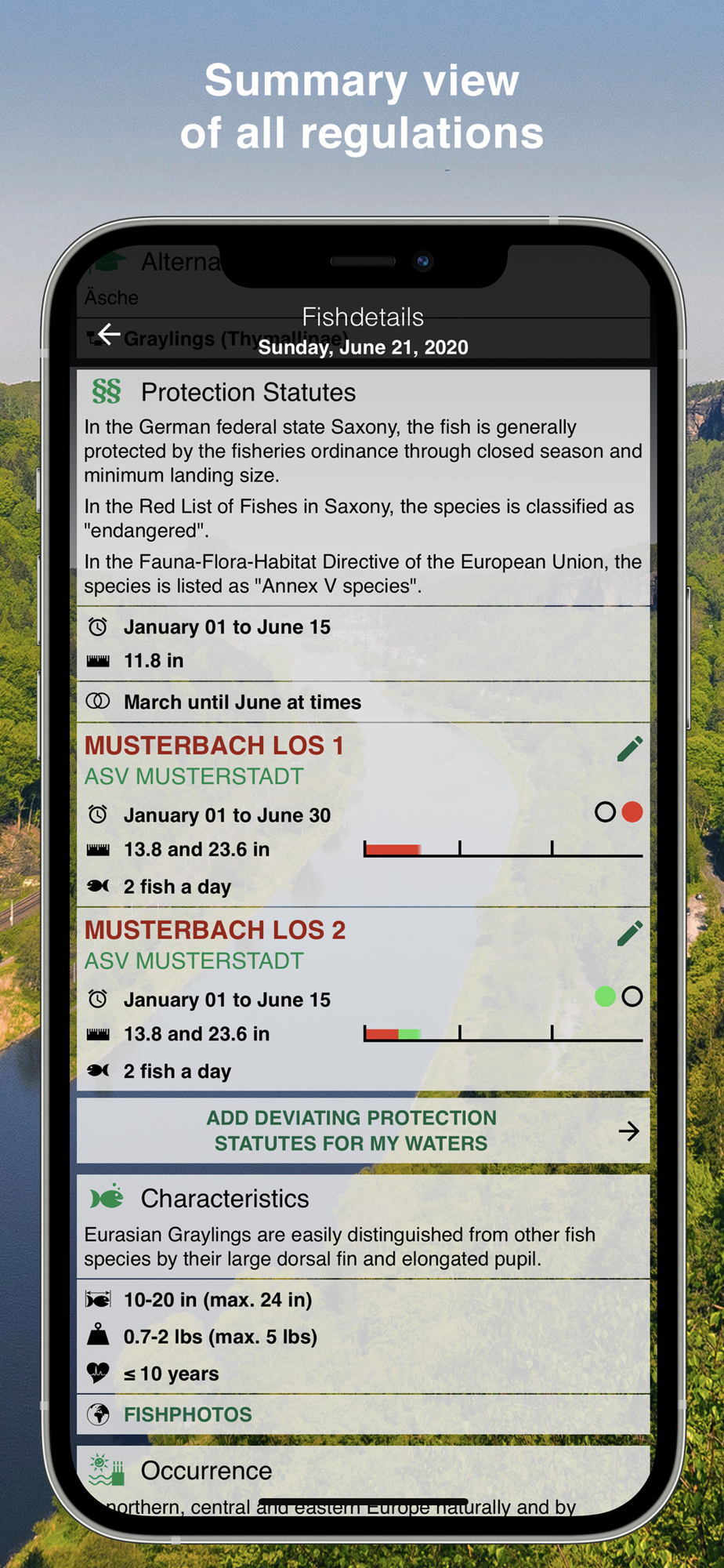 Anglers and gamekeepers can enter and compile individually deviating closed seasons, closed sizes and catch limits of target fish. Especially for the fishing waters of choice, the club or home waters...