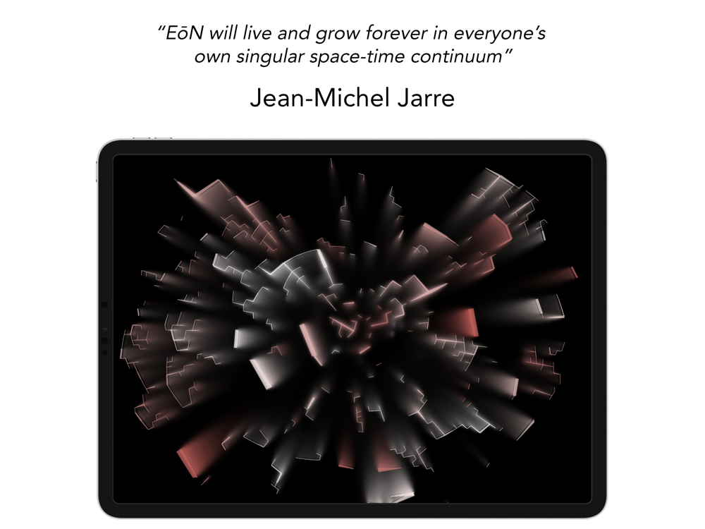 EōN produces an infinite music, in constant evolution, abundant in variations, composed by electronic music pioneer Jean-Michel Jarre, accompanied by a constant progression of organic visual elements.