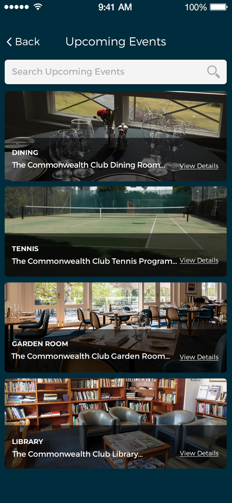 The Commonwealth Club Mobile App can monitor statements, explore the directory, stay updated on club events, make reservations, and more.