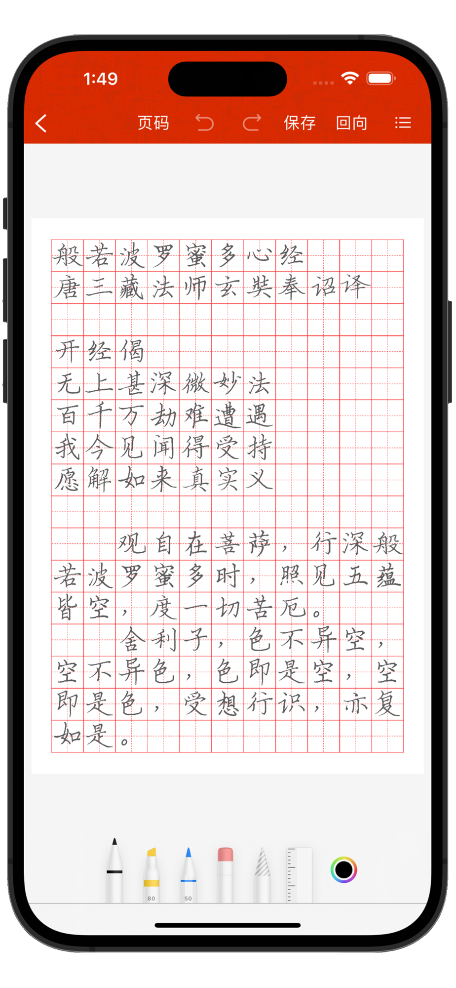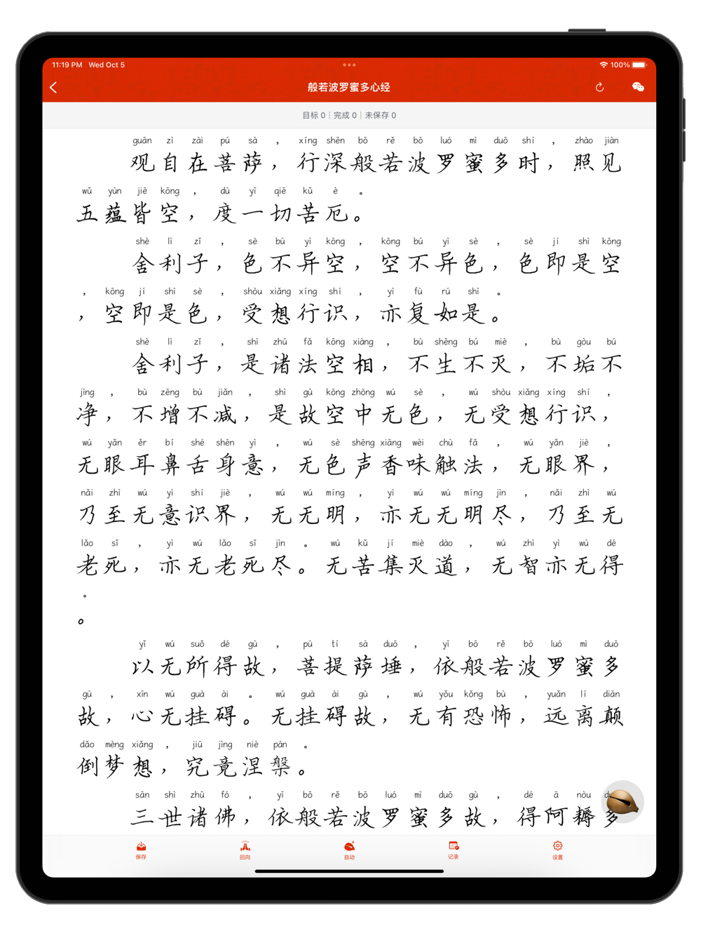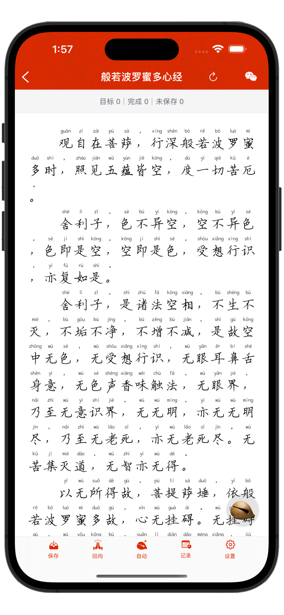 1、抄写经文:无纸化抄写经文,绿色环保,经文完成后可保存为图片;