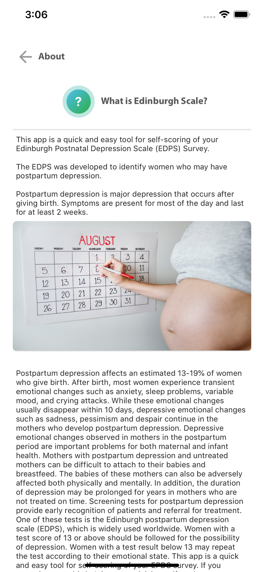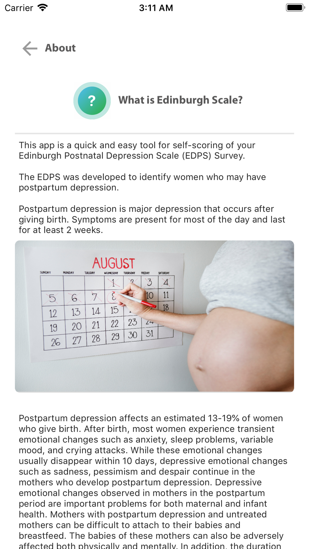 This app is a quick and easy tool for self-scoring of your postpartum depression by using Edinburgh Postnatal Depression Scale (EDPS).
