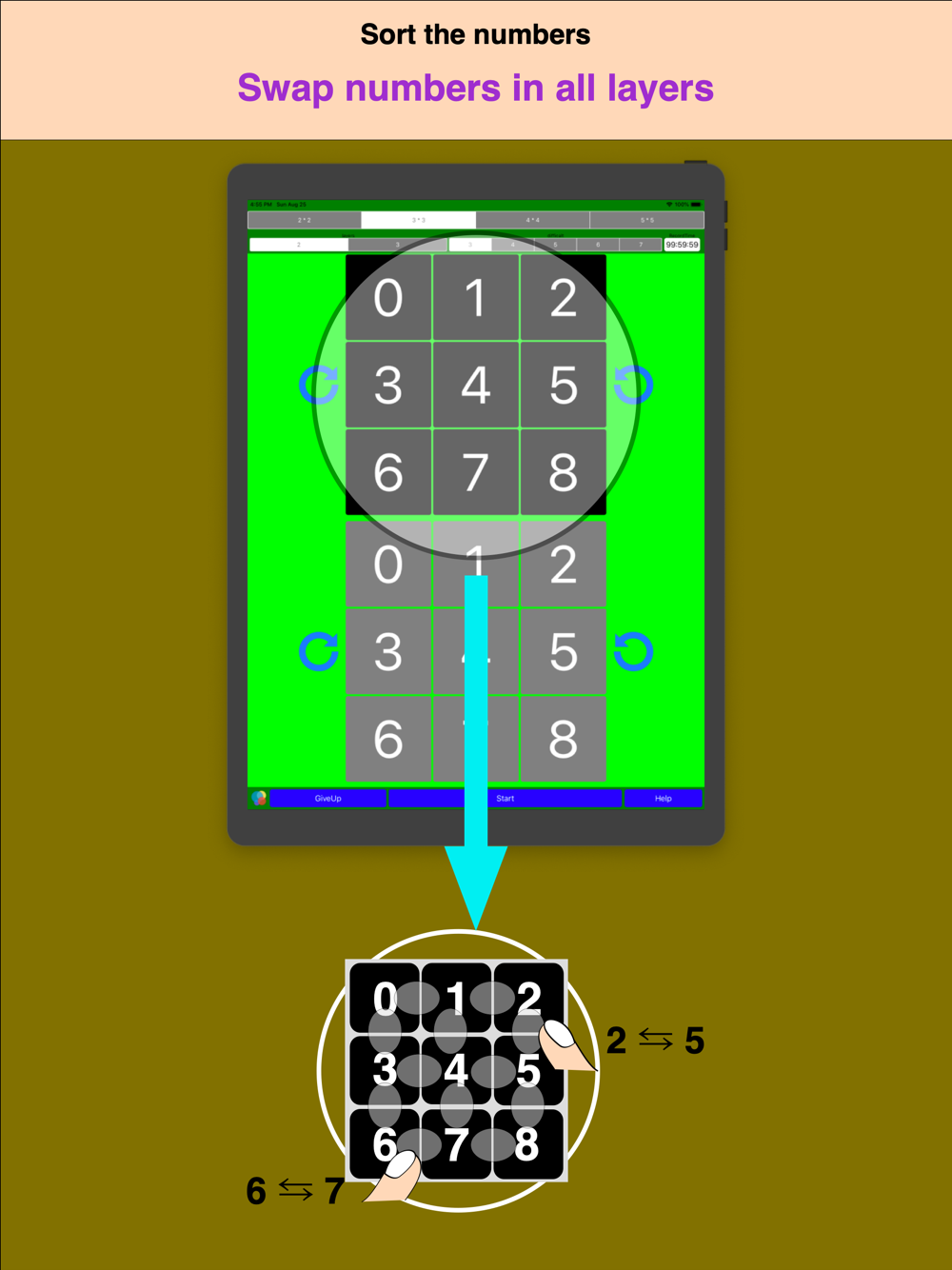 • the card arranged in the 0, 1, 2, 3…. and game is complete.